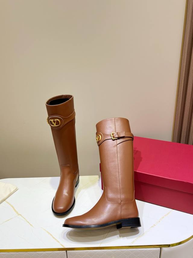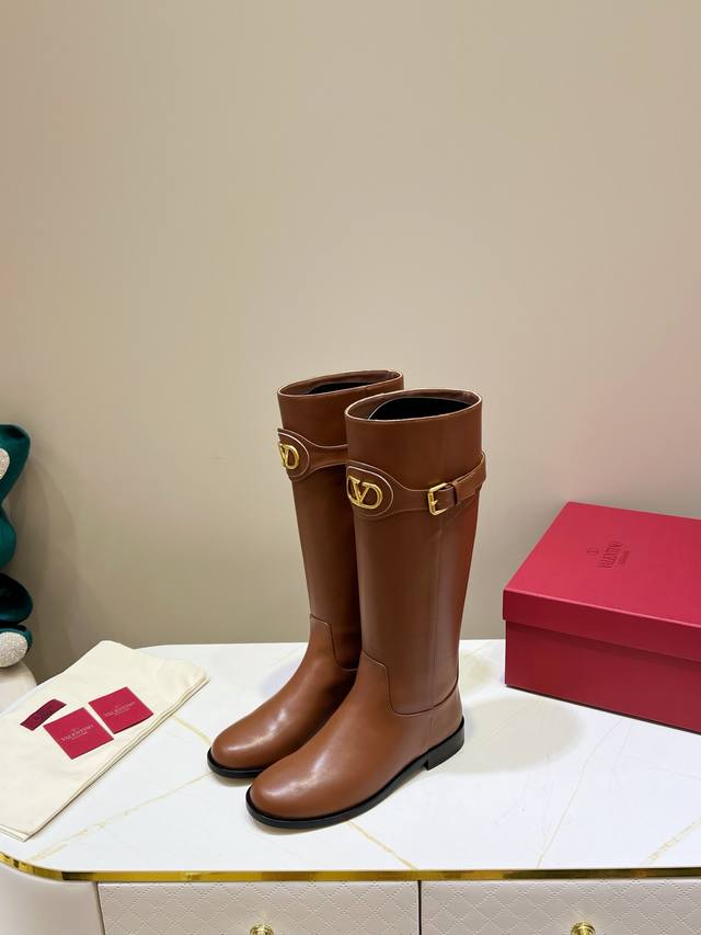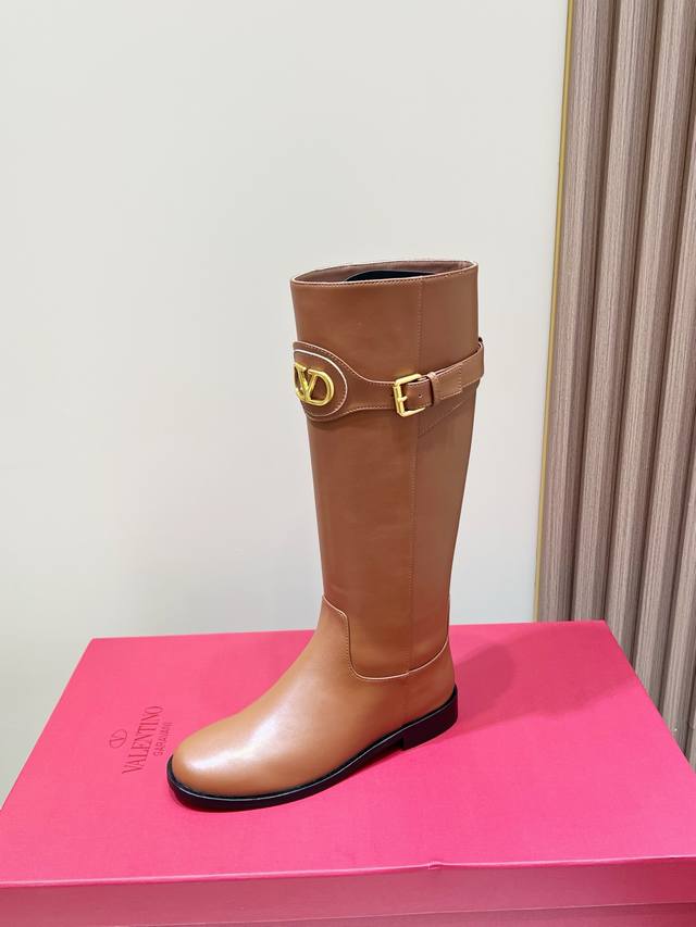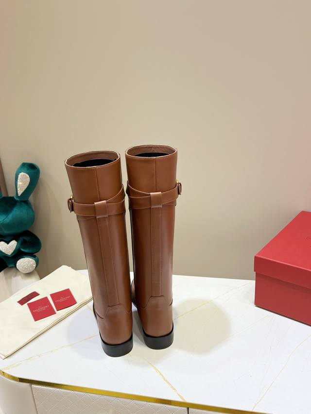 Factory Price: New Valentino calfskin boots - calfskin trim with vintage brass distressed effect, Vlogo Signature buckle closure. A classic style that suits everyone, simple and elegant. Materials: Imported cowhide, Italian genuine leather outsole. Heel height: 2cm. Sizes: 35-39, 34, 40, 41, 42. Custom sizes available.