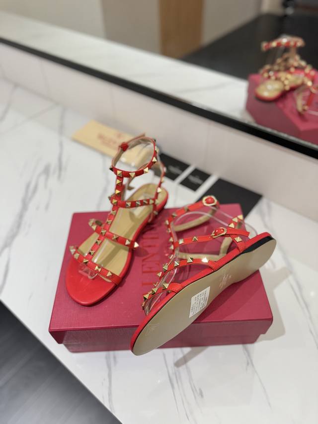 Factory Price (pp): Valentino Classic Ankle-Wrapped Studded Sandals, a timeless and essential item, a top-tier replica! Perfect side profile, original mold-made, rust-resistant studs, and high-quality hardware exude a luxurious feel, providing an authentic foot experience! A top choice for high-end customers. Materials: Upper: Original imported custom cowhide; Lining: Original imported goatskin; Outsole: Imported pearlescent genuine leather. Sizes: 35-39. Sizes 34, 40, 41, and 42 are custom-made and non-refundable.