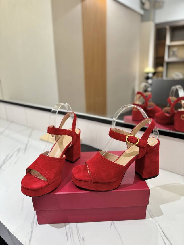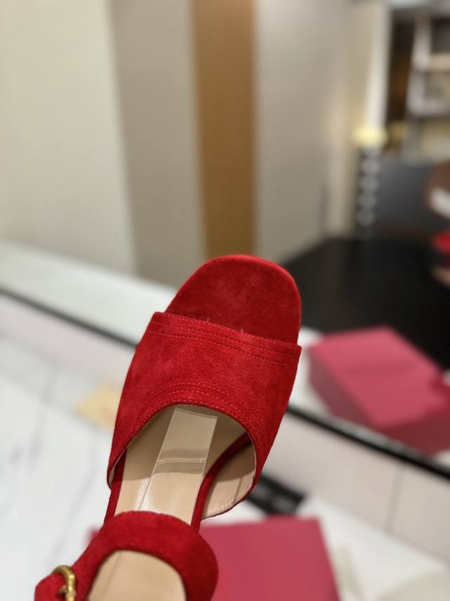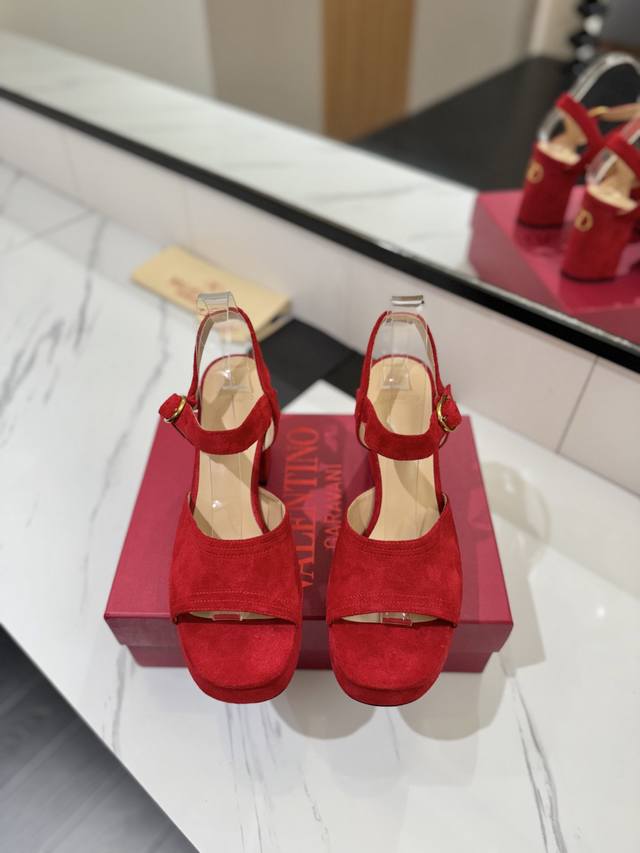 Factory Price (pp): Valentino's latest high-heeled chunky sandals, celebrity style, instantly gives you long legs! Upper: Nubuck Lining and insole: Mixed sheepskin Outsole: Italian Grade A genuine leather Platform: 2.5cm Heel height: 10cm Sizes: 35-39 (sizes 34, 40, 41, 42) Custom orders are non-refundable and non-exchangeable.