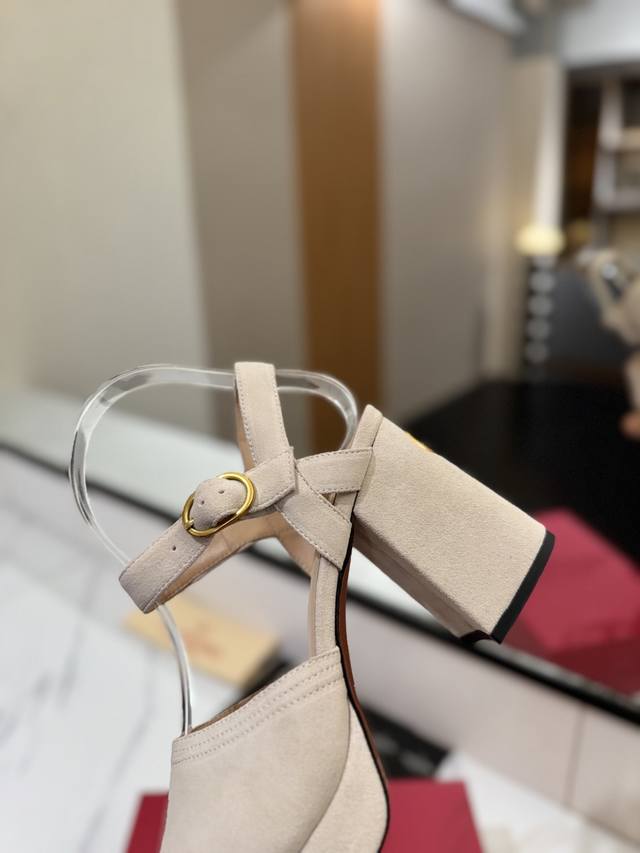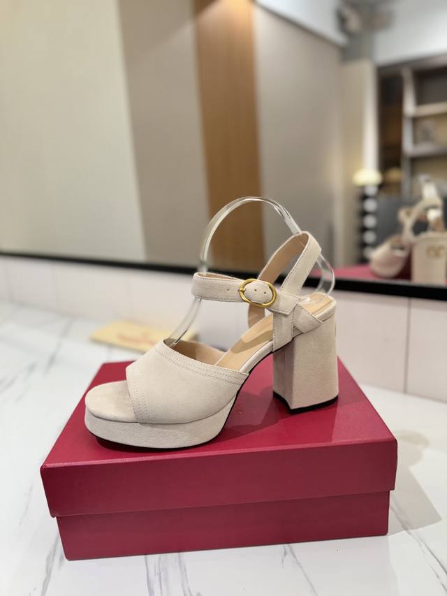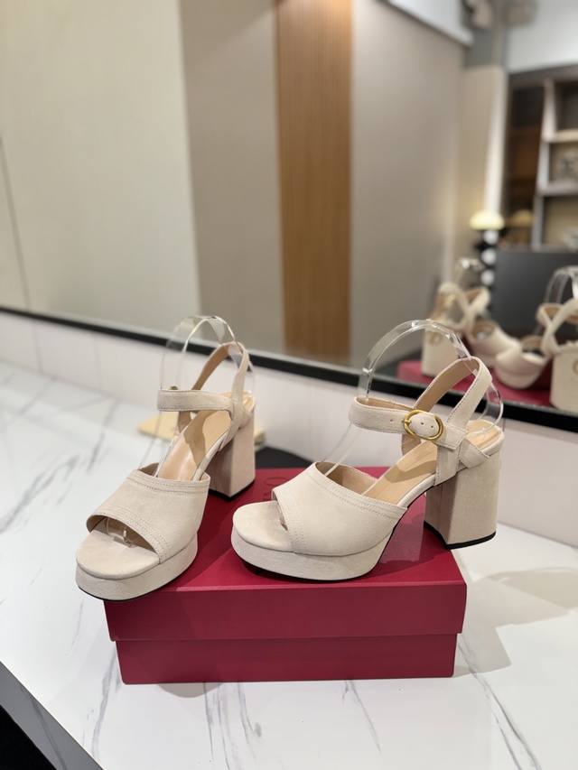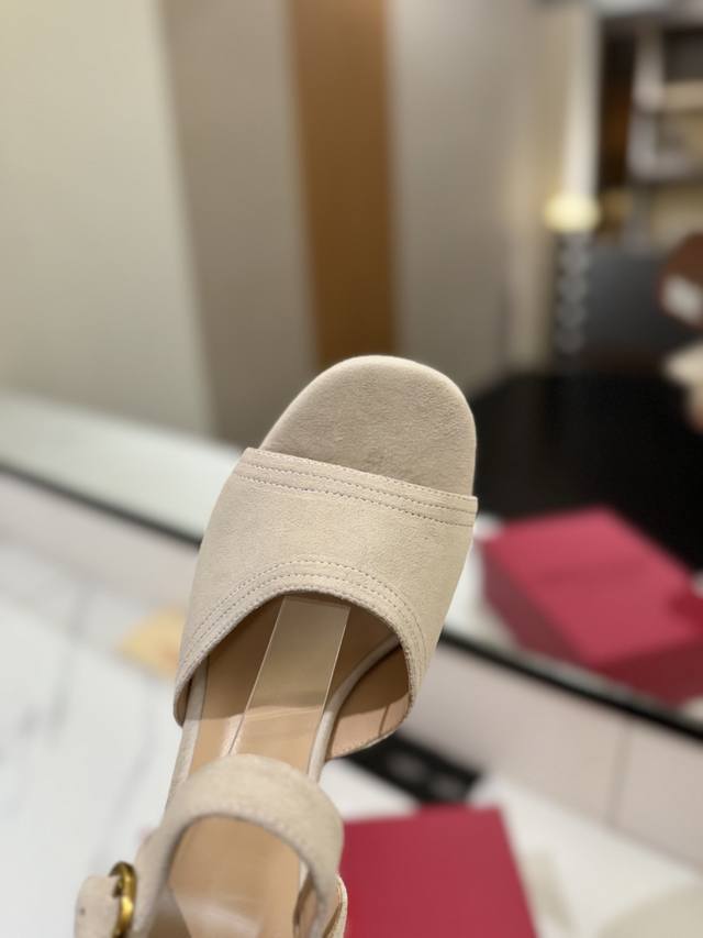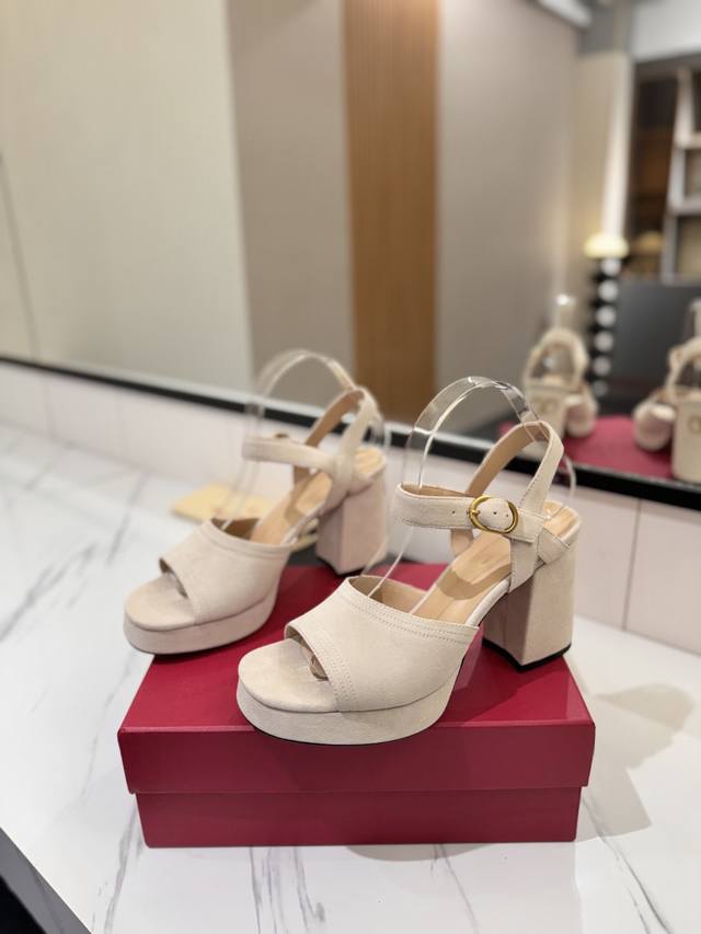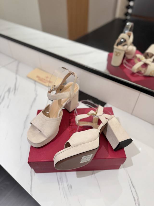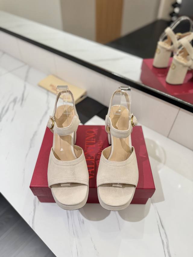 Factory Price (pp): Valentino's latest high-heeled chunky sandals, celebrity style, instantly gives you long legs! Upper: Nubuck Lining and insole: Mixed sheepskin Outsole: Italian Grade A genuine leather Platform: 2.5cm Heel height: 10cm Sizes: 35-39 (sizes 34, 40, 41, 42) Custom orders are non-refundable and non-exchangeable.