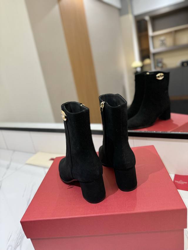 Factory Price: Valentino Garavani Vlogo Calfskin Ankle Boots - Gold Vlogo Signature details and high-quality hardware create a sophisticated and elegant style, giving it a unique feel! It's an indispensable pair of stylish boots in your shoe collection! Simple and elegant design, highest quality version on the market.