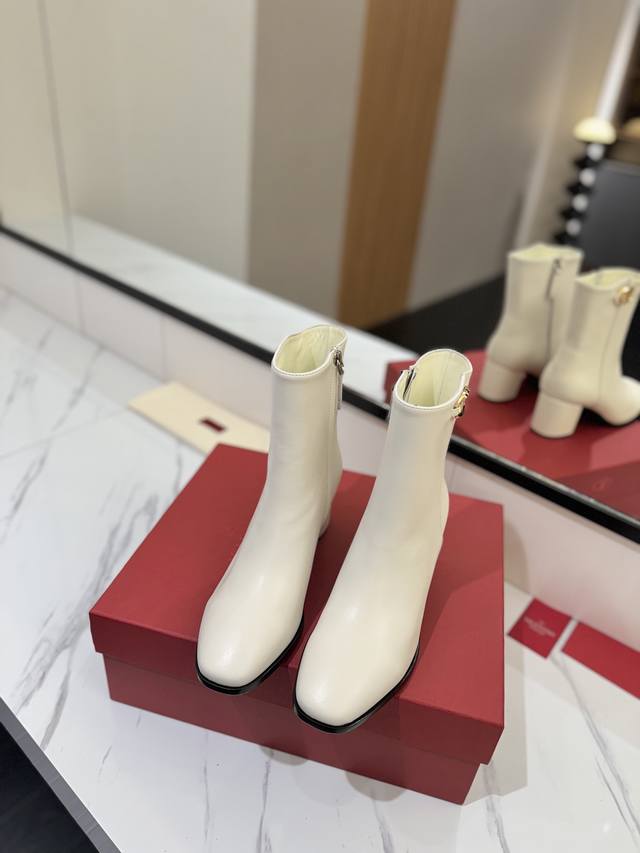 Factory Price: Valentino Garavani Vlogo Calfskin Ankle Boots - Gold Vlogo Signature details and high-quality hardware create a sophisticated and elegant style, giving it a unique feel! It's an indispensable pair of stylish boots in your shoe collection! Simple and elegant design, highest quality version on the market.