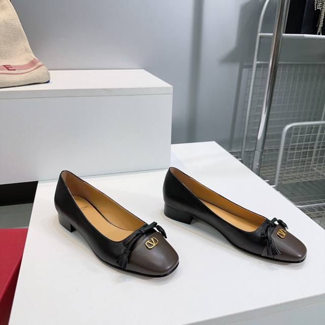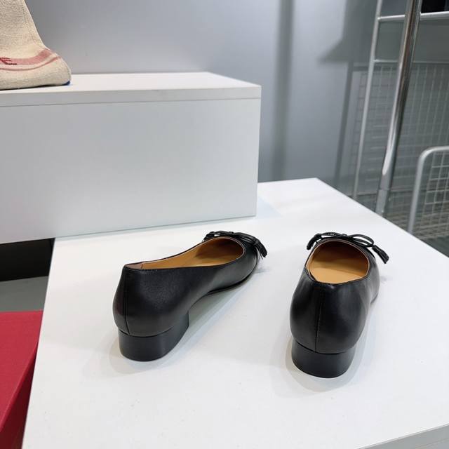 High-quality factory release! Top-quality Valentino 2025 Autumn/Winter latest boutique bow-adorned chunky-heeled flat shoes with a small square toe! Classic small V-buckle paired with an elegant and cute color-blocked bow! A clever combination of innovation and classic style, its classic design leads fashion every year; each shoe is a versatile must-have. Top-notch craftsmanship and perfect texture, every detail is impeccable! Upper made of imported mixed sheepskin; insole made of premium sheepskin; Italian imported genuine leather outsole. Shoes: approx. 2cm. Sizes: 35-41. Orders are non-refundable and non-exchangeable. Comes with original packaging.