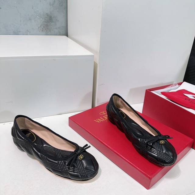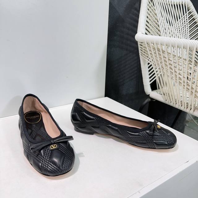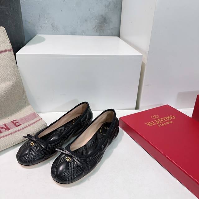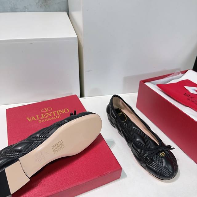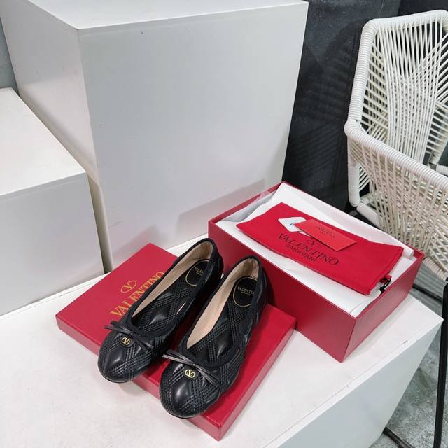 High-quality factory release! Top-quality Valentino Spring/Summer 2025 latest bow-embroidered diamond-patterned foam flat ballet flats! Original purchase, versatile and comfortable! Features a foam-filled, embroidered diamond-patterned upper! Exuding luxury! Valentino's ballet flats this season are extremely comfortable! So comfortable to wear