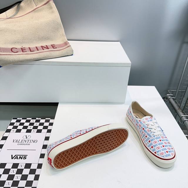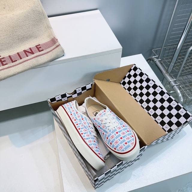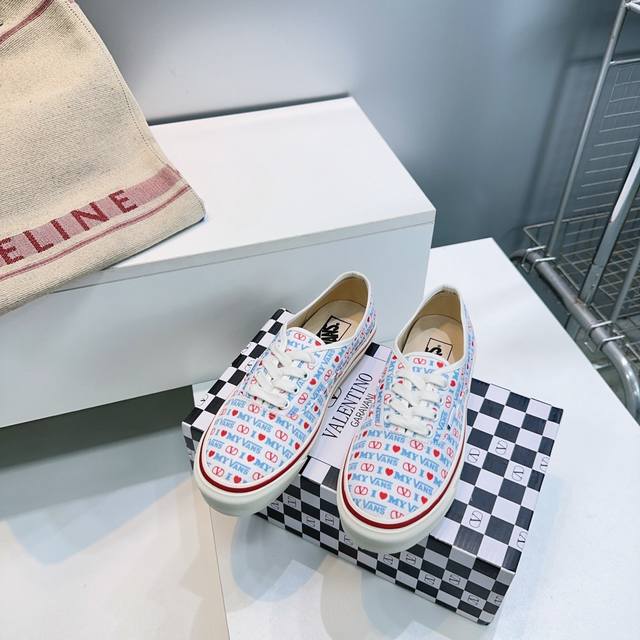High-quality factory release! Top-quality Valentino Vans Spring/Summer 2026 latest collaboration casual canvas shoes for couples! Printed pattern, casual vacation style! Many celebrities and fashion bloggers have recommended this product. The overall design uses the Vans shoe shape with a checkerboard pattern, and the classic Valentino logo adds a touch of sophistication and street style. Original high-quality custom canvas checkerboard print on the upper. Imported custom canvas insole. Original molded custom non-slip outsole. Sizes: Women's 35-42, 40, 41, 42 (non-refundable); Men's 39-46, 45, 46 (non-refundable). Comes with original packaging.