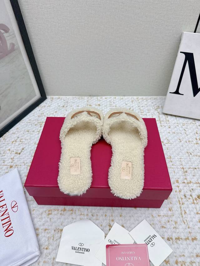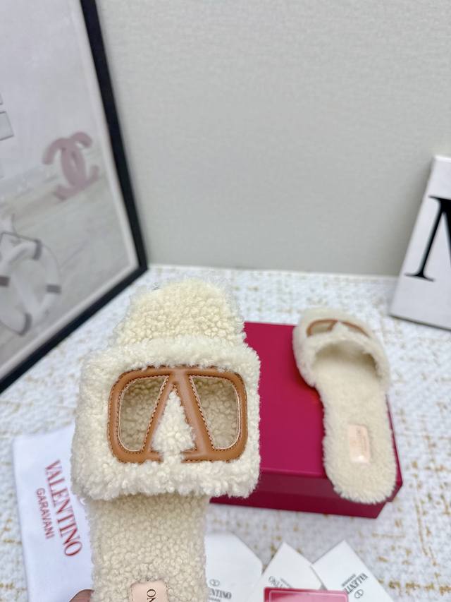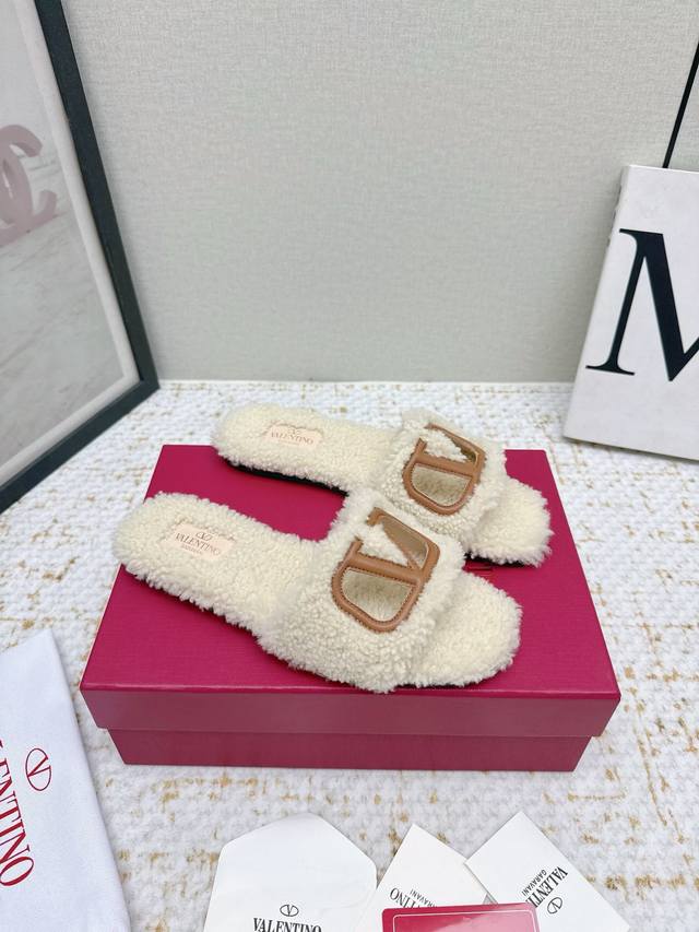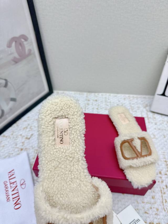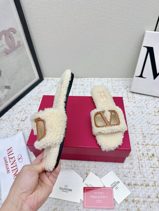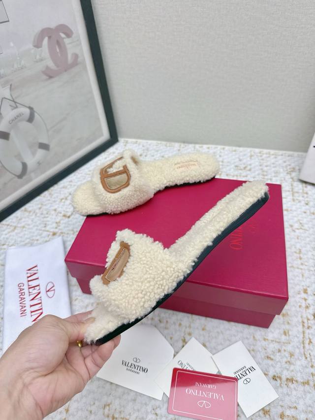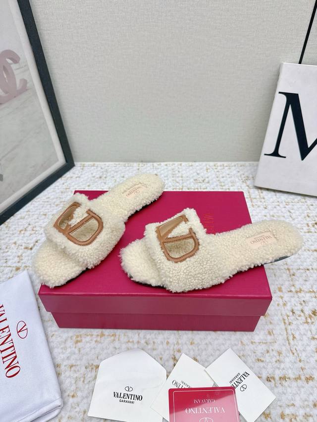High-quality factory-made Valentino 2025 latest style wool flat sandals. Features a 3D embossed Valentino logo on the upper. A popular online style. The soft lamb's wool is sweat-absorbent and non-slip, perfect for those with sweaty feet. The inner lining is made of sheepskin for extra comfort, breathability, and prevents overheating. Pair the fur with slouch socks for a stunning look in photos, making you the most eye-catching and fashionable girl/girl. Material: Top-grade lamb's wool; Lining: Mixed sheepskin; Sole: Italian genuine leather; Sizes: 35-43, 40-43 (custom sizes available).