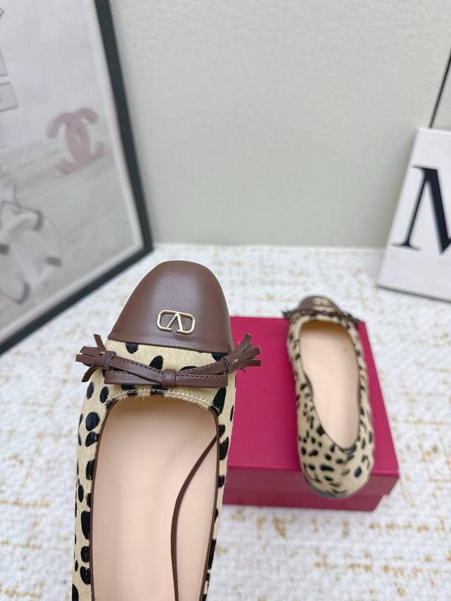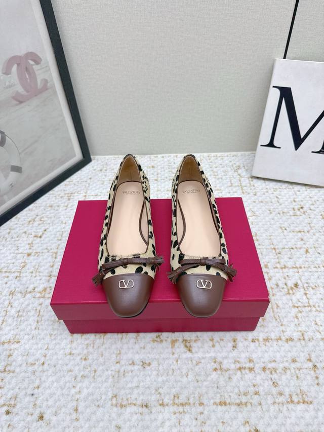 High-quality factory-made Valentino Mary Jane ballet flats from the Michele series. The contrasting color design on the upper is stylish and eye-catching. The bow detail paired with trendy tassels adds an elegant touch. Slightly vintage style. Lambskin upper. Genuine goatskin lining and sole. Open back design for easy wear. 2.5cm heel height. Sizes: 35-42. Colors: Black, Apricot, White, Apricot horsehair.