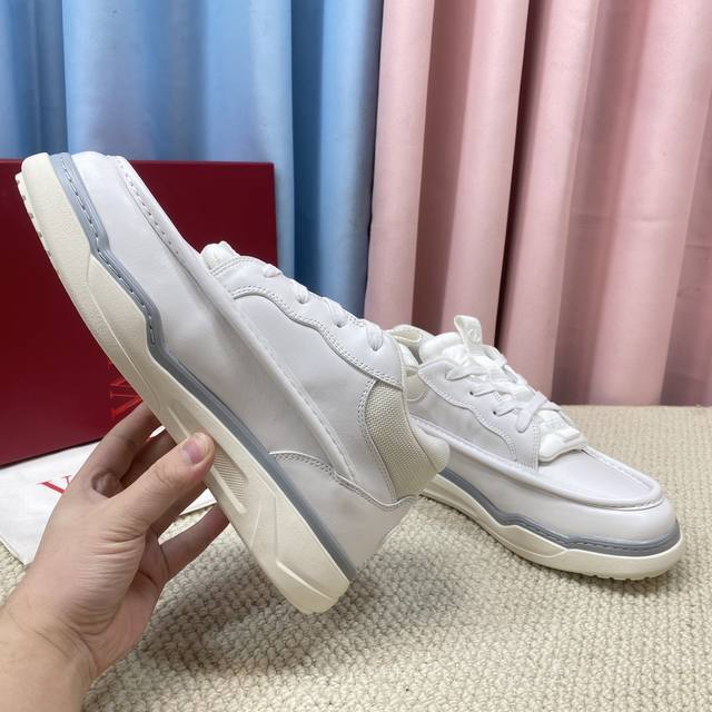 Top-tier Valentino boutique new arrival! Valentino mid-top sneakers! Stylishly modeled by Tan Jianci, Zhang Yixing, and Li Ronghao, these Runboot sneakers are lightweight, comfortable, and exude a relaxed, urban vibe. Original 1:1 custom-made cowhide upper with a delicate, soft, and comfortable feel. High-density mesh lining + high-elastic cotton. Outsole Ip + Tpr, a perfect combination consistent with boutiques. Complete boutique original packaging! Hot selling item now! High-end production throughout, perfect replica. Sizes: Men's 39-45, 46 (custom orders, no returns or exchanges). Standard leather shoe sizes.