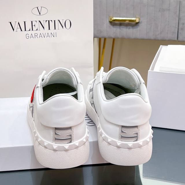 Top-tier version DDD Valentino Rockstud Untitled Valentine's Day couple's sneakers, skate shoes, studded shoes. DDD Alentino Garavani Rockstud Untitled white calfskin studded sneakers DDD Lace-up decoration with metal effect studs DDD Special number 11 tag DDD Rubber sole with decorative stud details DDD Rockstud limited edition sneakers are exquisite and beautiful, truly irresistible, a must-have for trendsetters! DDD Material: Cowhide + studs DDD Lining: Cowhide DDD Insole: Exclusive molded injection high-elastic insole + cowhide DDD Size: Women's 35-40; Men's 39-44 Women's 34, 41, Men's 38, 45 are custom-made, payment first, then arrangement DDD Full set of exquisite packaging from the boutique! DDD