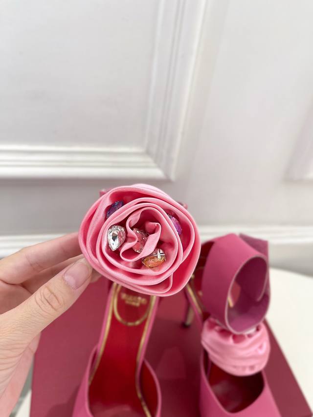 Valentino 2025 New Arrival: Drip Rose Crystal Flower High-Heeled Sandals! Valentino Garavani's classic "Roman Stud" series debuts with a fresh interpretation! The latest gold V-buckle element exudes a high-end feel! Super stylish! Upper: Original custom lambskin Lining: Imported lambskin Outsole: Italian genuine leather Heel Height: 10.5cm Sizes: 35-39, 40, 41, Custom orders are non-refundable. Factory direct price: