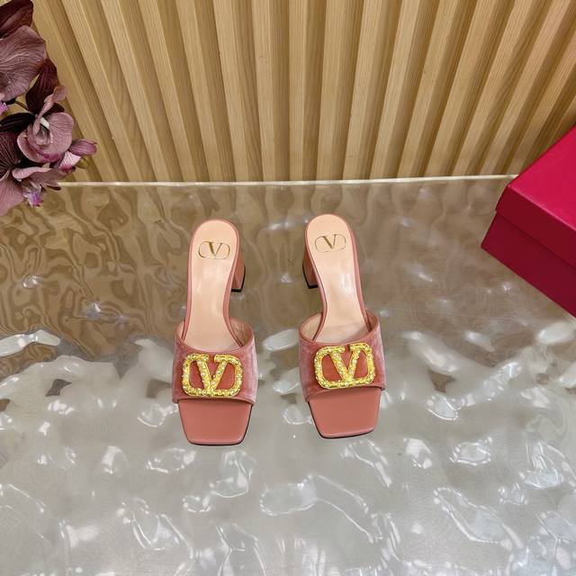 Valentino 25Ss New Arrival from Valentino Boutique: Diamond V-Buck Chunky Heel Sandals, Exclusive Mold Design. A must-have for trendy street style icons! Follow the fashionistas' lead and you can't go wrong! Pair them with simple or stylish outfits. The openwork design on the upper, adorned with classic Valentino studs, exudes high-end elegance and makes your legs look whiter. The details and materials combine to create a sophisticated look. Features: 1. Imported original velvet; 2. Original custom sheepskin lining; 3. Original Valentino molded anti-oxidation studs; 4. 6cm Italian imported genuine leather sole; 5. Sizes: 35-42, 40, 41, 42 (custom sizes available).