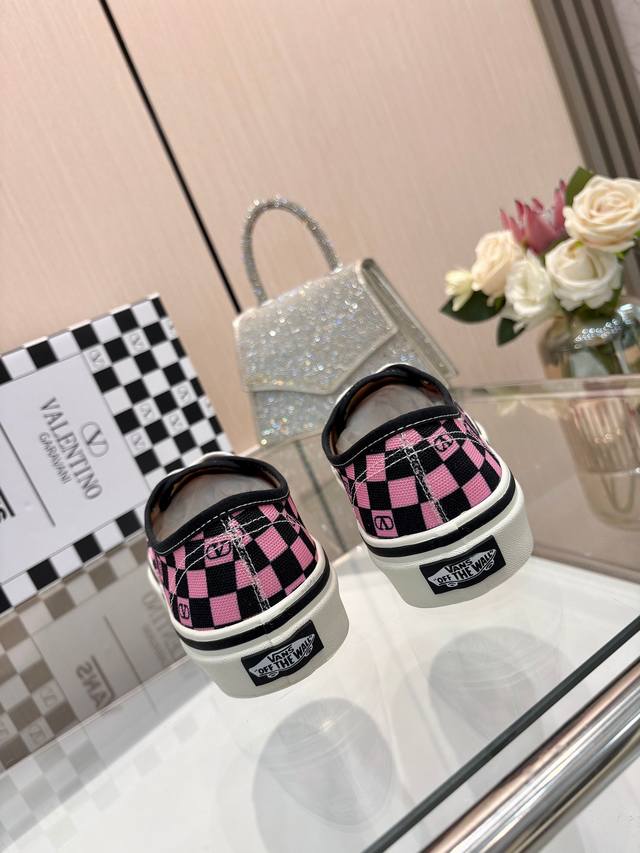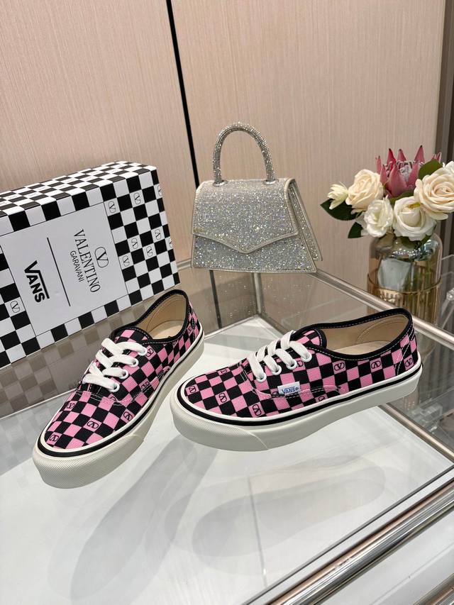 Valentino and Vans collaborate to release a new co-branded sneaker. This collaboration blends Valentino's Italian haute couture aesthetics with Vans' free and authentic spirit, giving classic footwear a timeless and dynamic personality. Many celebrities have worn this sneaker, including Jolin Tsai, Yang Zi, Liu Wen, Ma Baiquan, Choi Soo-bin, Freen, Song Zuer, JJ Lin, Zel, Cecilia Cheung, Shark, and Xin Yunlai. Sizes: Women's: 35-42 (41.42 - custom orders, no returns or exchanges); Men's: 39-46 (45.46 - custom orders, no returns or exchanges).