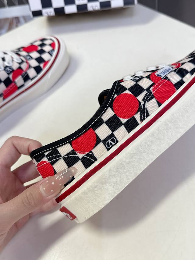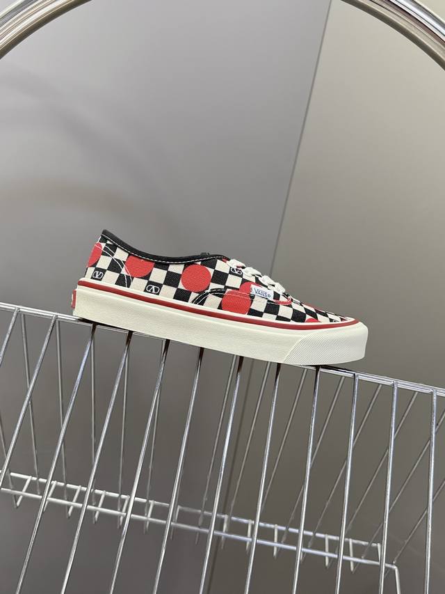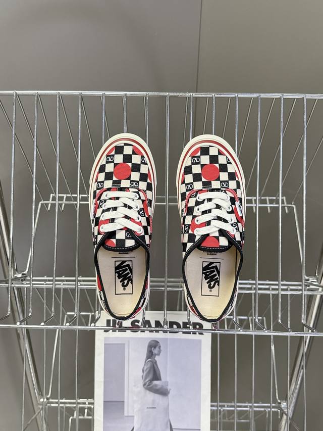Valentino and Vans latest collaboration casual canvas shoes for couples. Recommended by many celebrities and fashion bloggers. The overall design follows the Vans shoe shape with a checkerboard pattern, adorned with the classic Valentino logo, exuding a high-end feel and street style. Upper: Original high-quality custom canvas with checkerboard print. Lining: Imported custom canvas. Outsole: Original molded custom anti-slip outsole. Full collaboration packaging. Sizes: Women's 35-40, Men's 39-44.