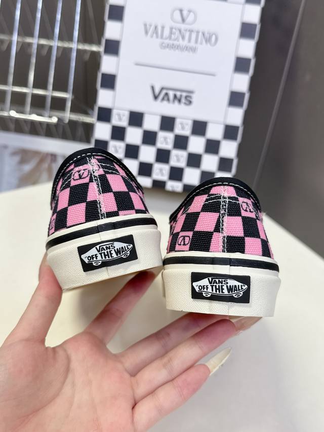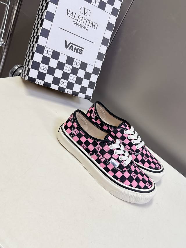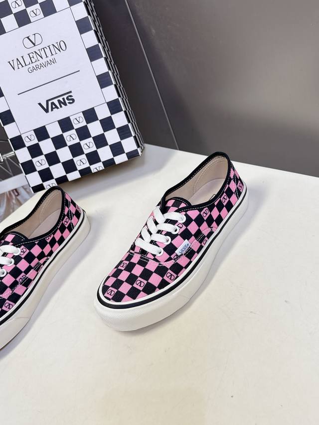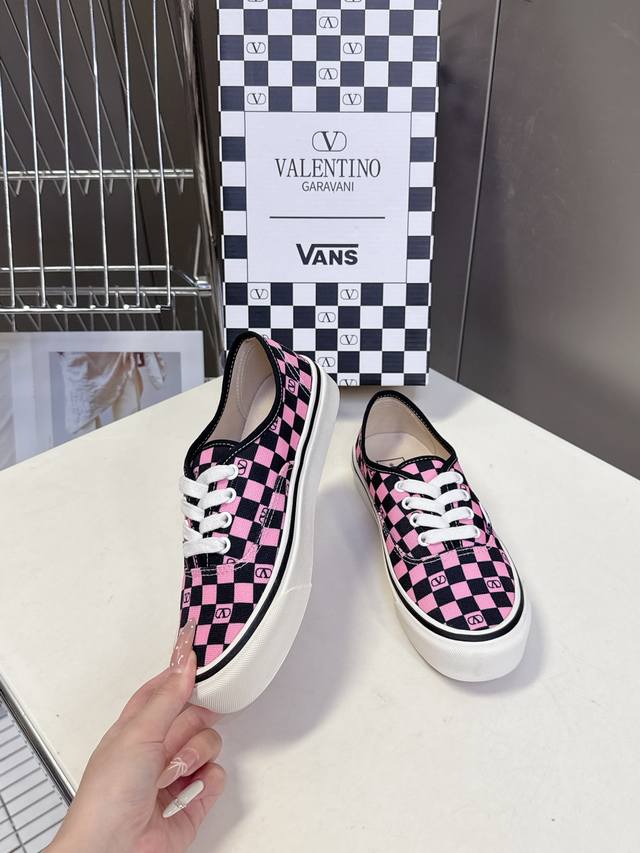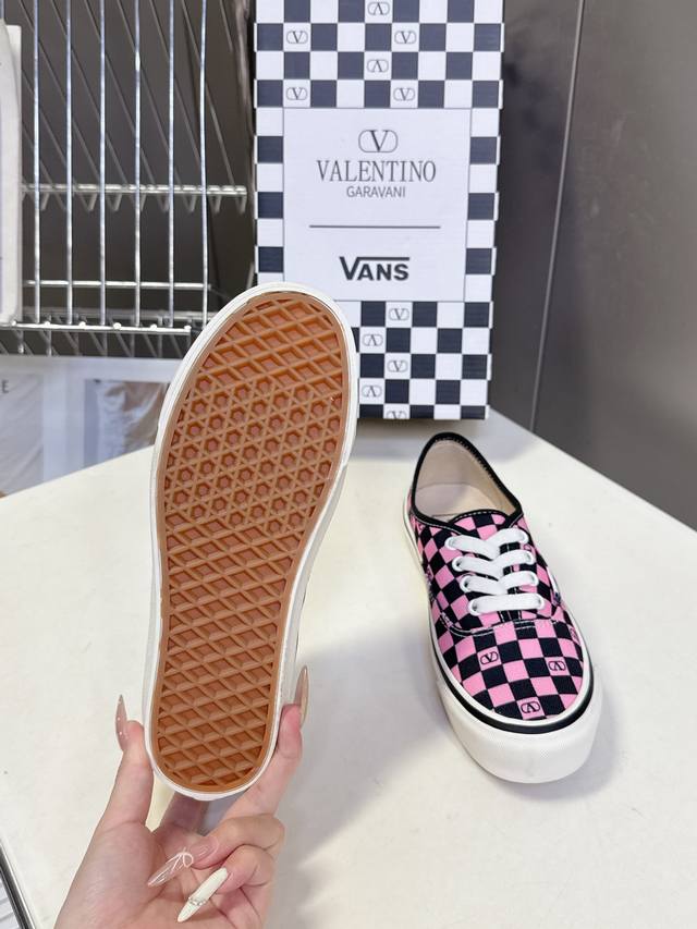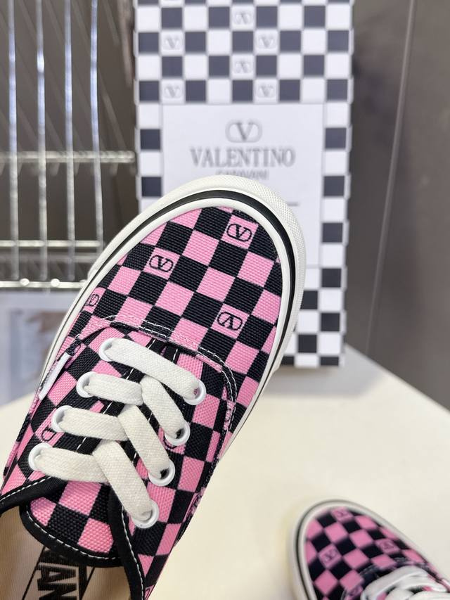 Valentino and Vans latest collaboration casual canvas shoes for couples. Recommended by many celebrities and fashion bloggers. The overall design follows the Vans shoe shape with a checkerboard pattern, accented with the classic Valentino logo, exuding a high-end feel and street style. Upper: Original high-quality custom canvas with checkerboard print. Lining: Imported custom canvas. Outsole: Original molded custom anti-slip outsole. Full collaboration packaging. Sizes: Women's 35-40, Men's 39-44.