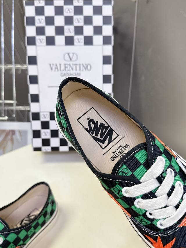 Valentino and Vans latest collaboration casual canvas shoes for couples. Recommended by many celebrities and fashion bloggers. The overall design follows the Vans silhouette with a checkerboard pattern, accented with the classic Valentino logo, exuding a high-end feel and street style. Upper: Original high-quality custom canvas with checkerboard print. Lining: Imported custom canvas. Outsole: Original molded custom non-slip outsole. Full collaboration packaging. Sizes: Women's 35-40, Men's 39-44.