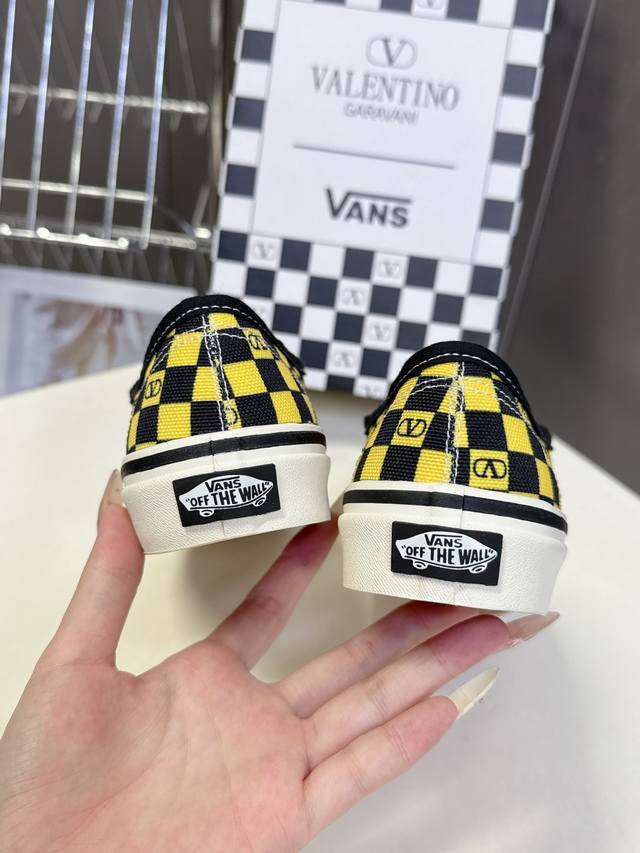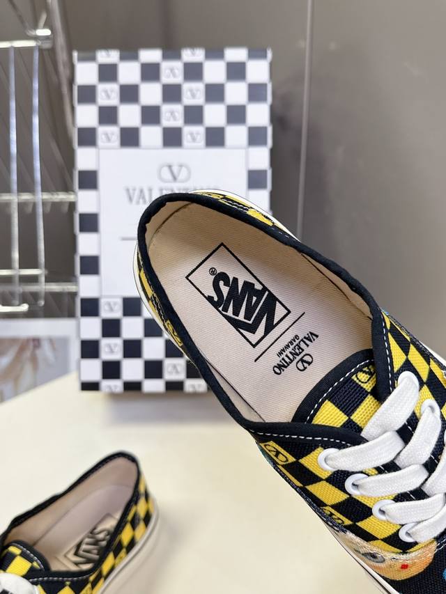 Valentino and Vans latest collaboration casual canvas shoes for couples. Recommended by many celebrities and fashion bloggers. The overall design follows the Vans shoe shape with a checkerboard pattern, adorned with the classic Valentino logo, exuding a high-end feel and street style. Upper: Original high-quality custom canvas with checkerboard print. Lining: Imported custom canvas. Outsole: Original molded custom anti-slip outsole. Full collaboration packaging. Sizes: Women's 35-40, Men's 39-44.