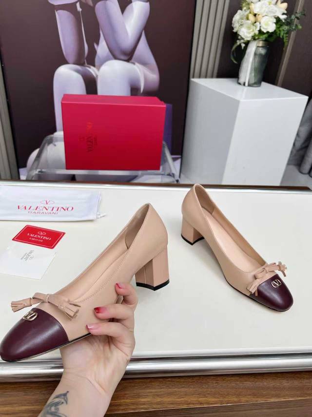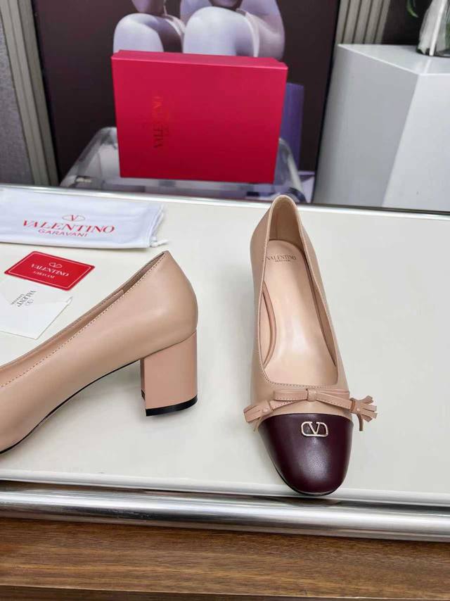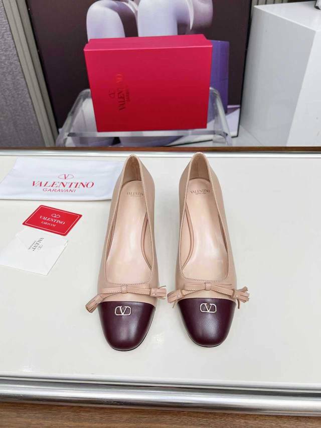 Valentino's new Mary Jane ballet flats from the Michele collection. The contrasting color design on the upper is stylish and eye-catching. The bow detail paired with trendy tassels adds ultimate elegance. A touch of vintage style. Lambskin upper. Genuine goatskin lining and sole. Open back design for easy wear. 6cm heel. Sizes: 35-42. Colors: Black, Apricot, White, Apricot Horsehair. Factory direct.