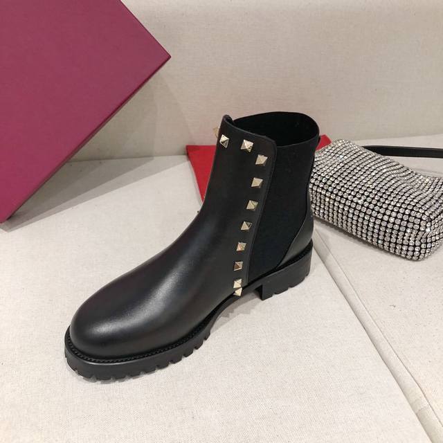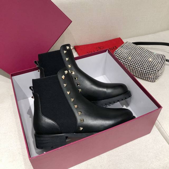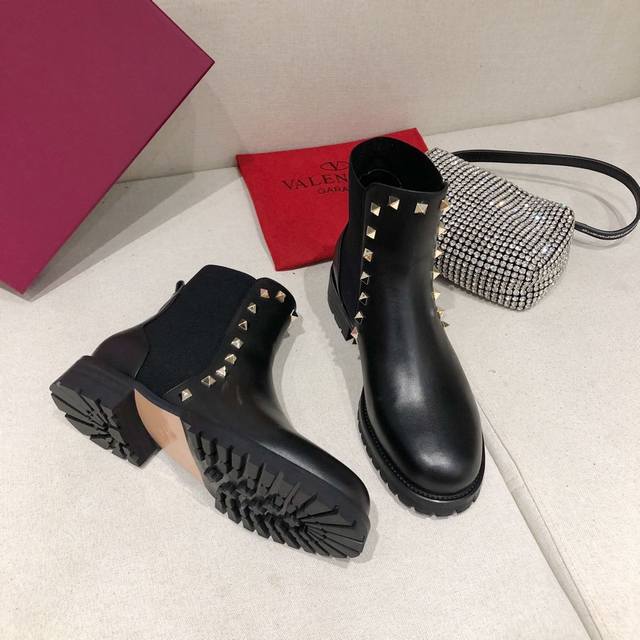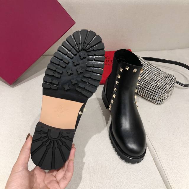 Factory direct price women's shoes and sportswear original single hot item is here! Valentino studded ankle boots, all handmade, with an exclusive mold for the outsole. A high-end women's shoe you deserve. Outer material: full-grain cowhide, lining: sheepskin, sizes 35-41, 30mm heel height, easy for everyone to wear, super comfortable.