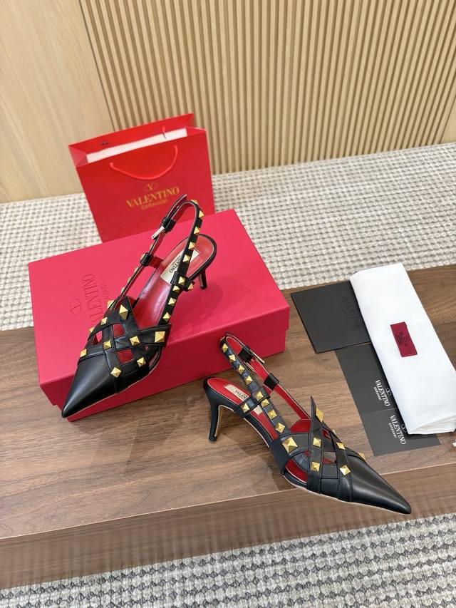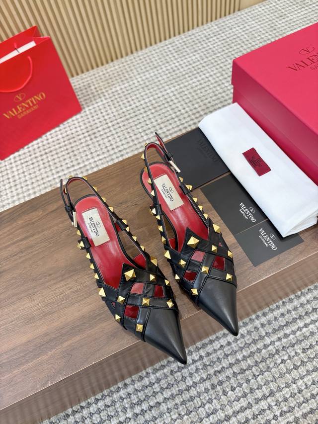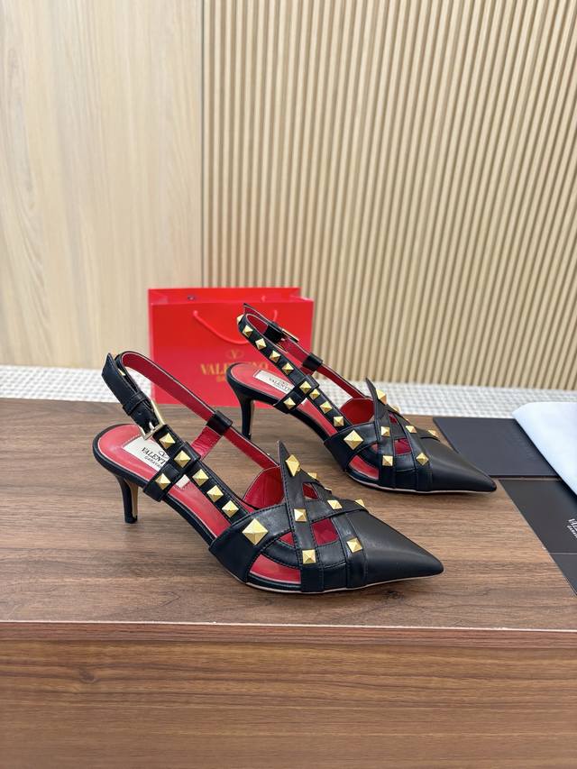 Factory direct price women's shoes and sportswear original top-quality version Valentino Ddd Spring/Summer new women's backless sandals, a walking must-have Ddd Unique pyramid rivet metal accents bring out a full sense of high-end feel, living up to expectations for the new season! Ddd Worth buying