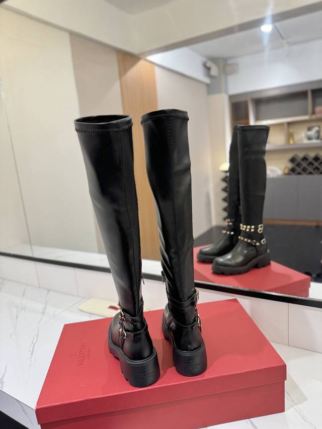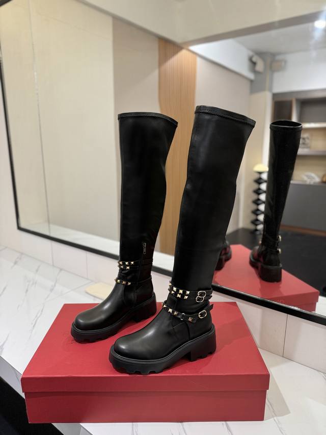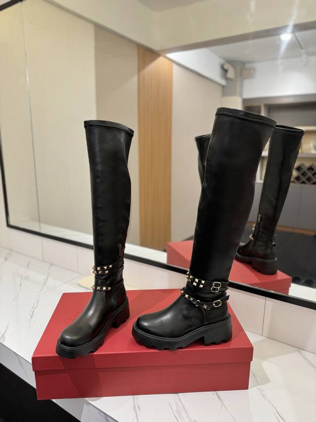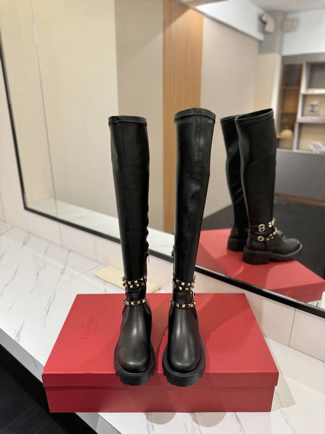 Factory direct women's shoes and sportswear, original new style, Valentino Garavani Vlogo Signatur over-the-knee boots, instantly making your legs look longer. High-end top-quality craftsmanship, classic style, irresistible, looks good on everyone. The high-quality hardware adds a touch of sophistication and elegance, creating a unique feel! It's an indispensable shoe in your wardrobe! Simple and stylish design, highest quality version on the market.