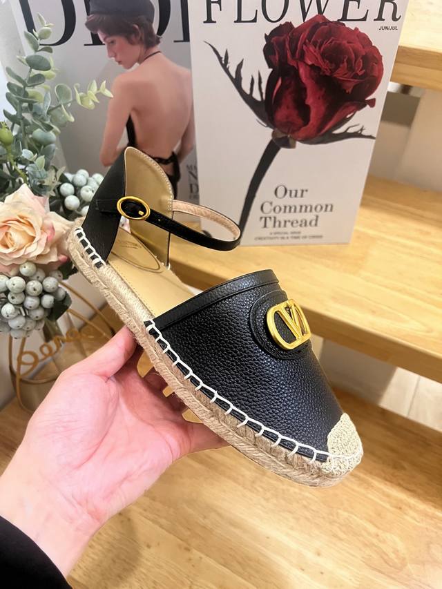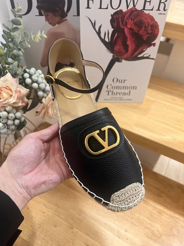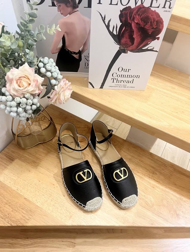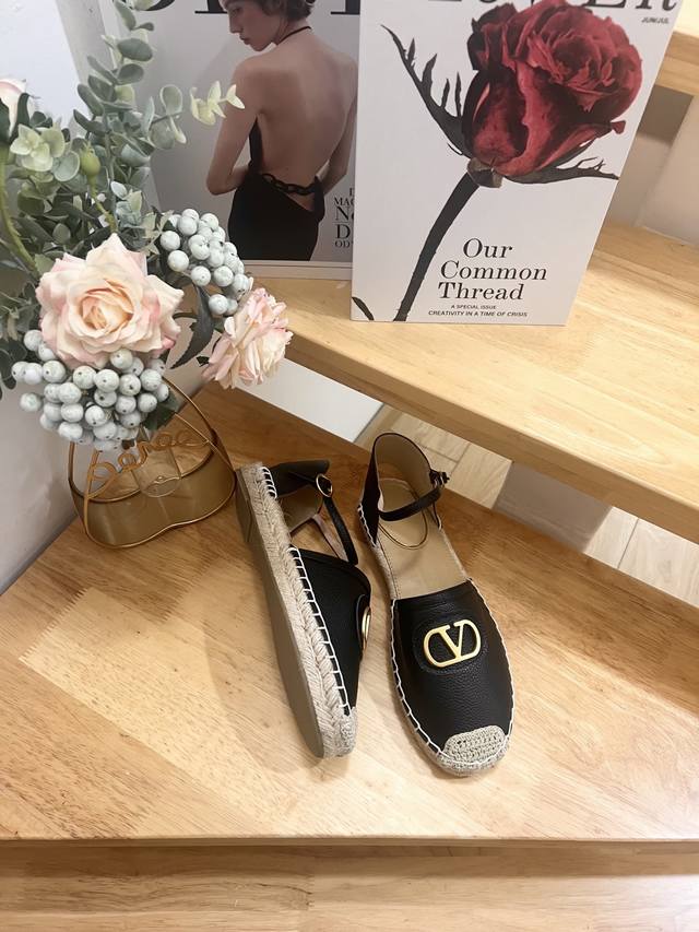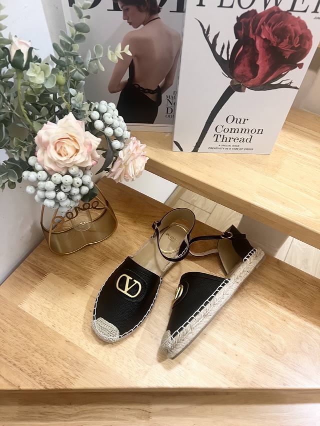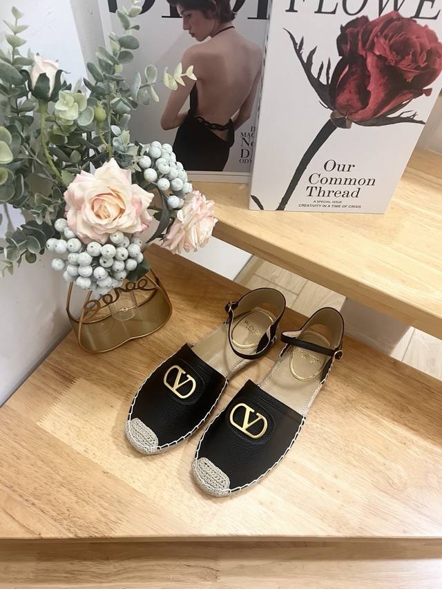 Valentino Garavani Lapa Lychee Grain Leather V-Buckle New Hollow Fisherman's Shoes