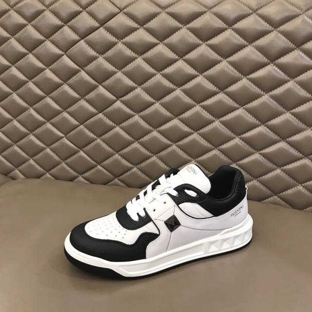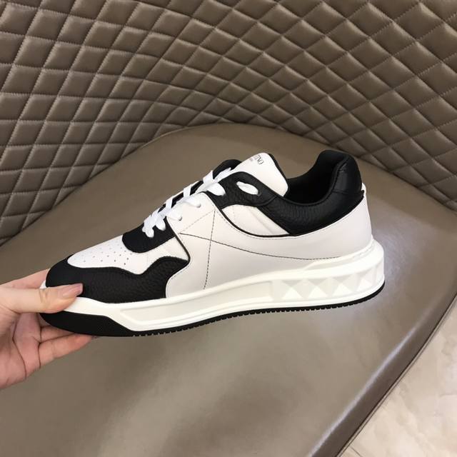 Valentin* One Stud series platform sneakers, featuring a simple and clean design for a trendy and refreshing look! Quilted plaid and oversized studs create a striking punk style. Meticulous leather construction and a clean silhouette, with smooth lines establishing a cool tone, make these classic and versatile items! The platform sole adds 5cm height, maximizing your presence. Size: 38-44, 45 (custom sizes available).