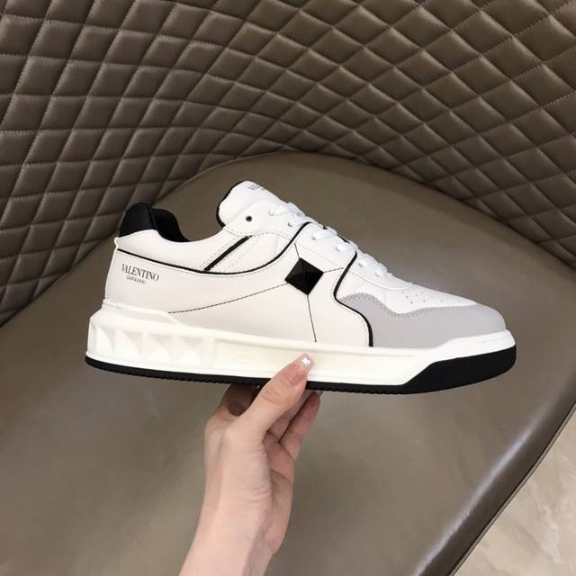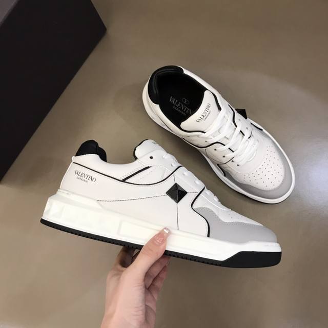 Valentin* One Stud series platform sneakers, featuring a simple and clean design for a refreshing and trendy look! Quilted plaid and oversized studs create a striking punk style. Meticulous leather construction and a clean silhouette, with smooth lines establishing a cool tone, make these classic and versatile items! The platform sole adds 5cm in height, maximizing your presence. Size: 38-44, 45 (custom sizes available).