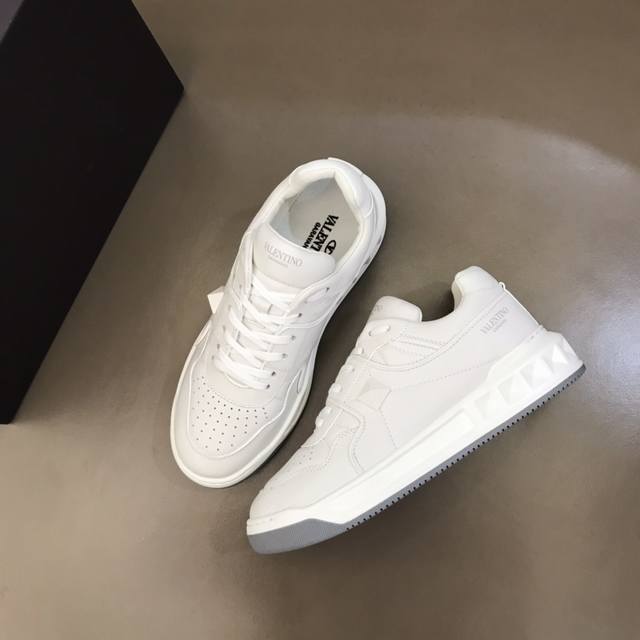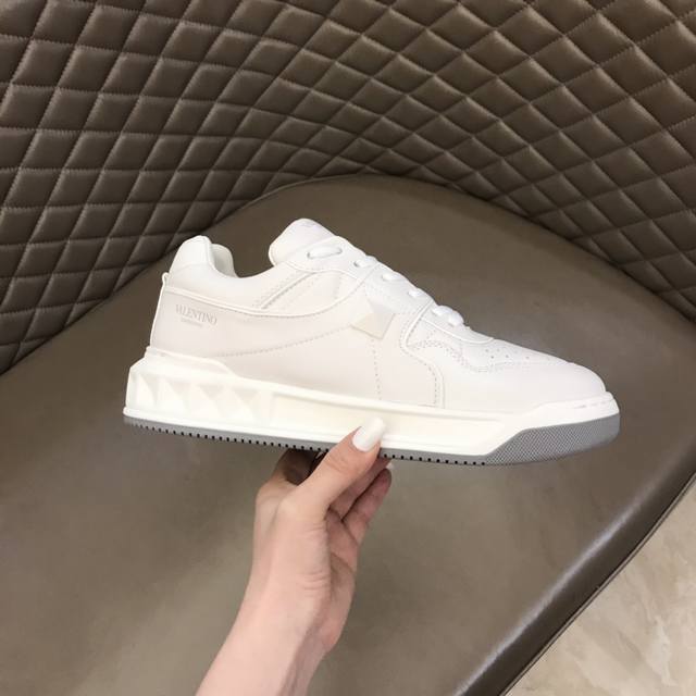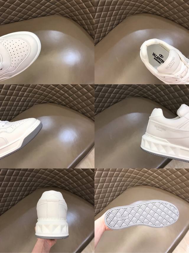 Valentin* One Stud series platform sneakers, featuring a simple and clean design for a trendy and refreshing look! Quilted plaid and oversized studs create a striking punk style. Meticulous leather construction and a clean silhouette, with smooth lines establishing a cool tone, make these classic and versatile items! The platform sole adds 5cm height, maximizing your presence. Size: 38-44, 45 (custom sizes available).
