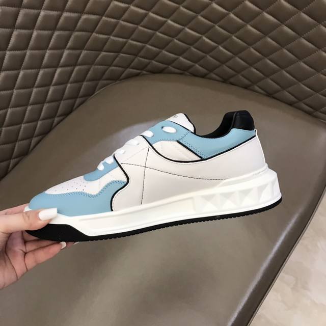 Valentin* One Stud series platform sneakers, featuring a simple and clean design for a trendy and refreshing look! Quilted plaid and oversized studs create a striking punk style. Meticulous leather construction and a clean silhouette, with smooth lines establishing a cool tone, make these classic and versatile items! The platform sole adds 5cm in height, maximizing your presence. Size: 38-44, 45 (custom sizes available).