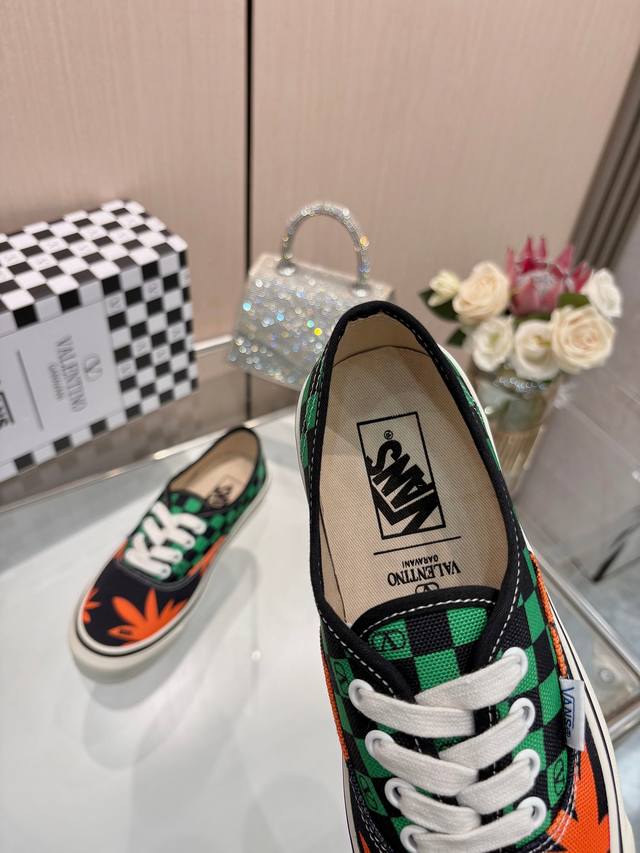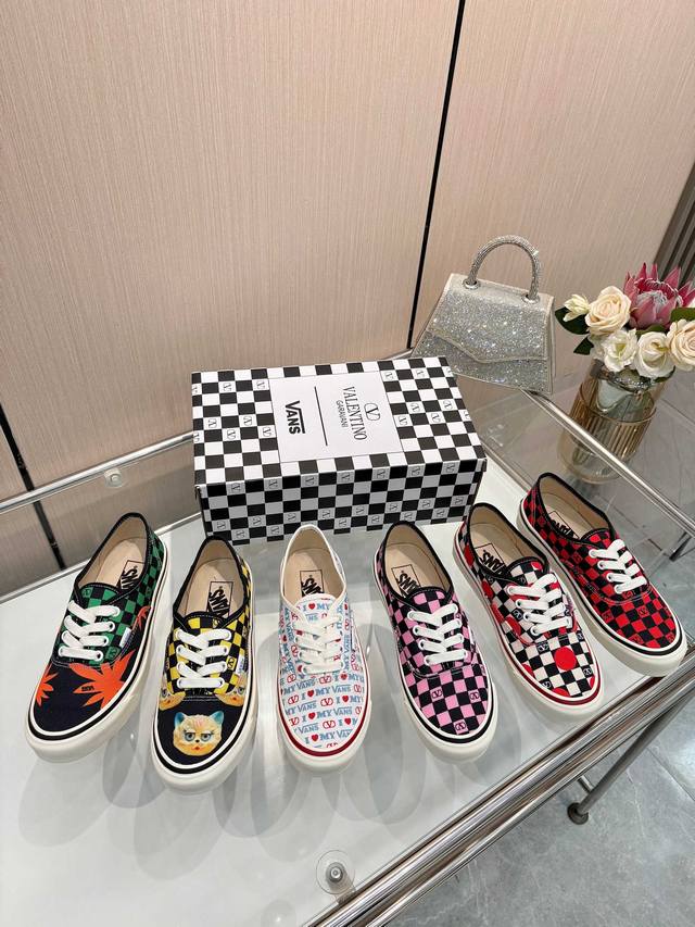 Valentino and Vans collaborate to release a new co-branded sneaker. This collaboration blends Valentino's Italian haute couture aesthetics with Vans' free and authentic spirit, giving classic footwear a timeless and dynamic personality. Many celebrities have worn this sneaker, including Jolin Tsai, Yang Zi, Liu Wen, Ma Baiquan, Choi Soo-bin, Freen, Song Zuer, JJ Lin, Zel, Cecilia Cheung, Shark, and Xin Yunlai. Sizes: Women's: 35-42 (41.42 - custom orders, no returns or exchanges); Men's: 39-46 (45.46 - custom orders, no returns or exchanges).