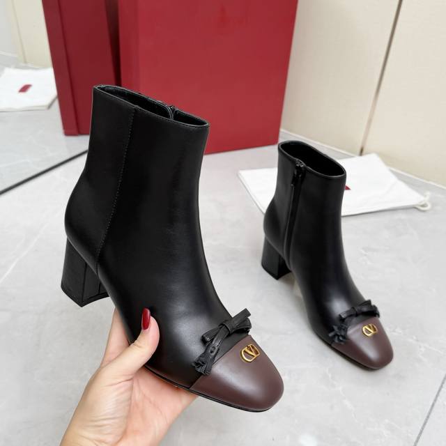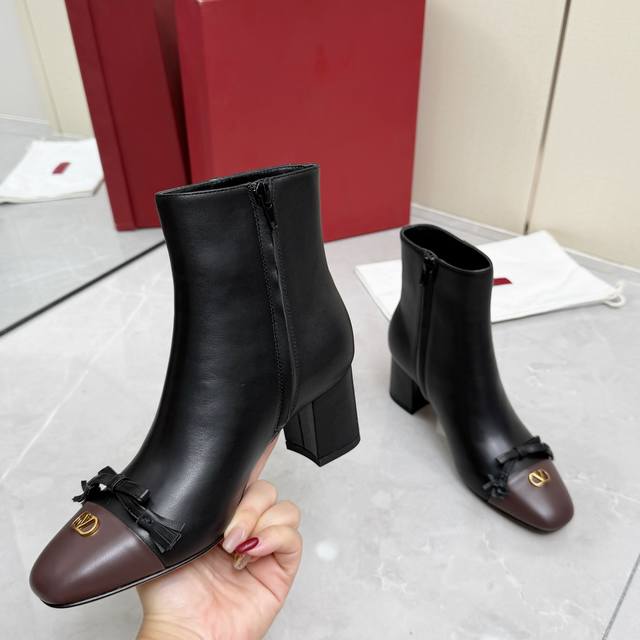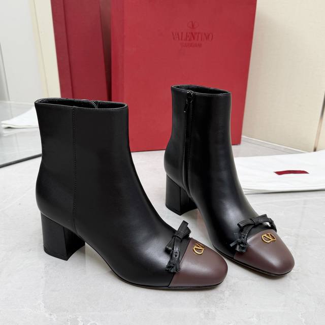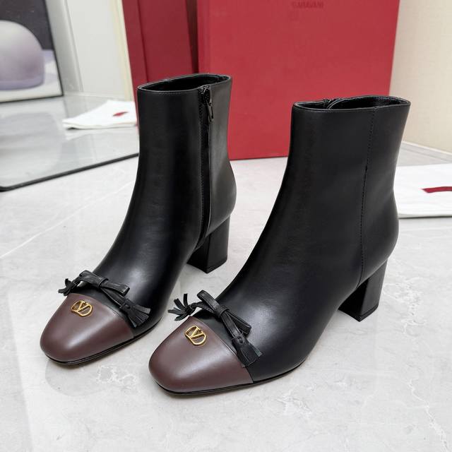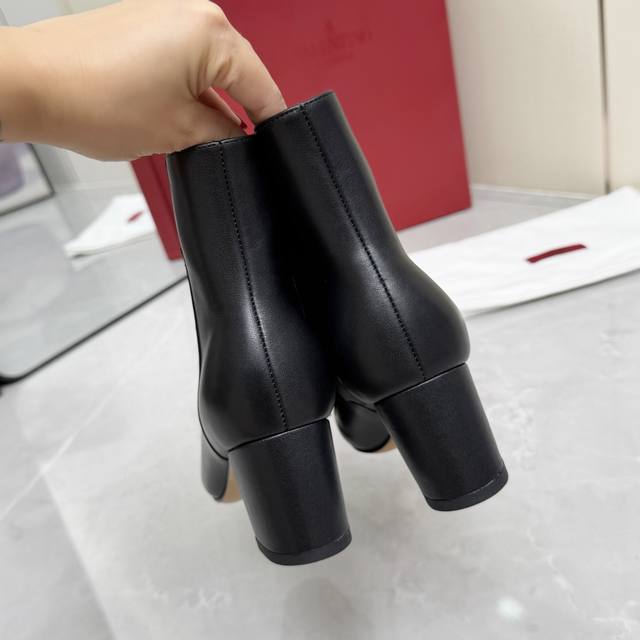 Valentino Fall/Winter 2025 New Arrival - Simple and Stylish Ankle Boots. Perfect details. Simple and timeless. Can be easily paired with any beautiful fall/winter outfit. Upper: Cowhide; Lining: Sheepskin; Outsole: Genuine Leather; Heel Height: 6cm; Size: 35-40, 41, 42 (Custom Made).
