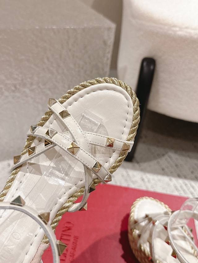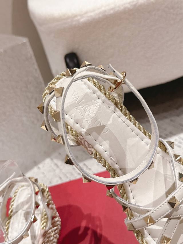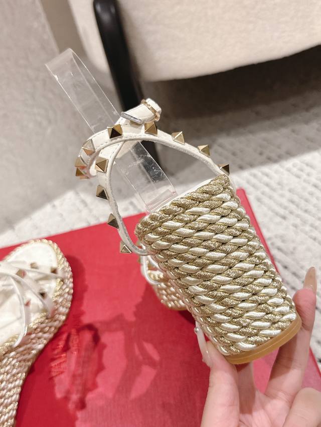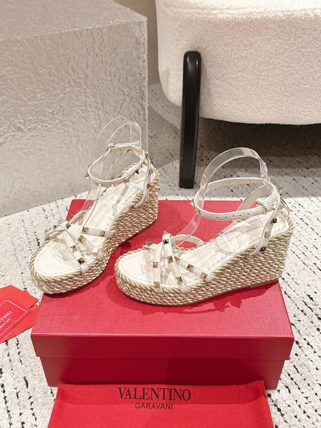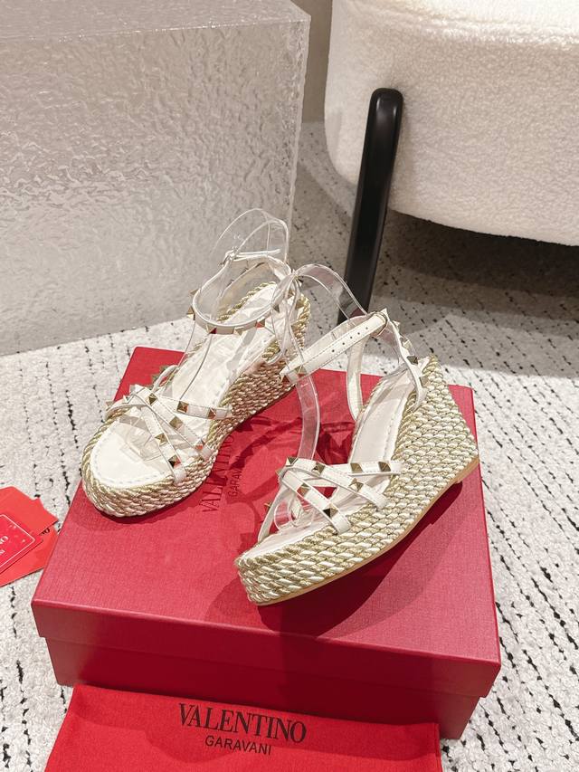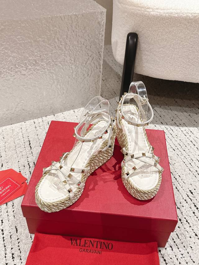 Valentino high-quality new studded hemp rope woven wedge sandals. Simple and super versatile. Perfectly luxurious on the feet and can be matched with any spring and summer outfit. Super comfortable! Original materials perfectly replicated. Original buckle molded. Cowhide upper. Cowhide lining. Electroplated studded buckle. Original non-slip rubber outsole. Available in three colors! Approximately 10cm heel height. Approximately 4cm forefoot platform. Comes with original boutique packaging! Sizes: 35-40, 41 available for custom orders. Factory direct price.