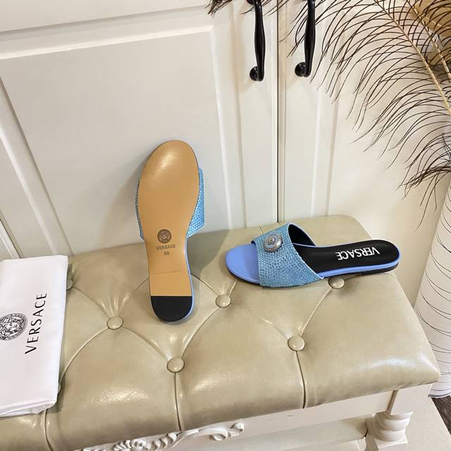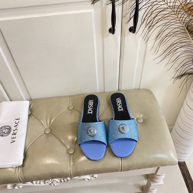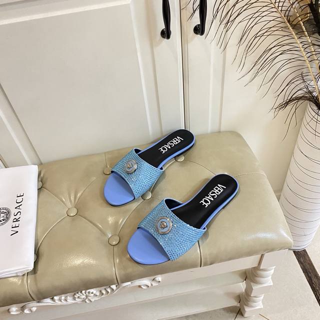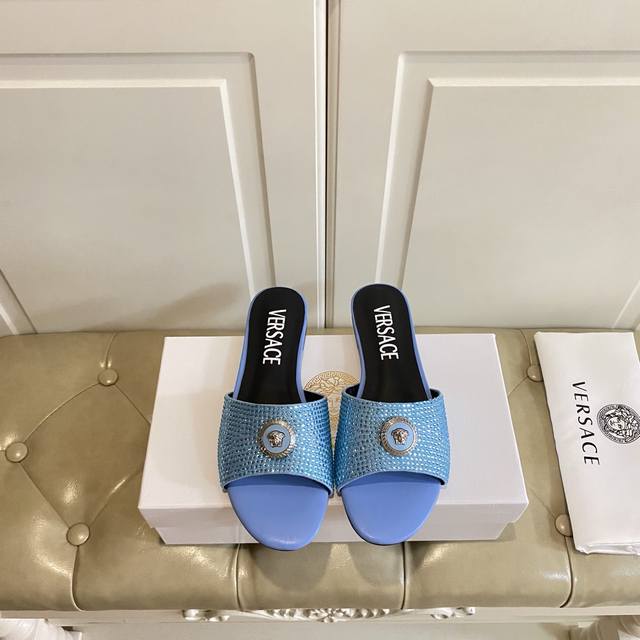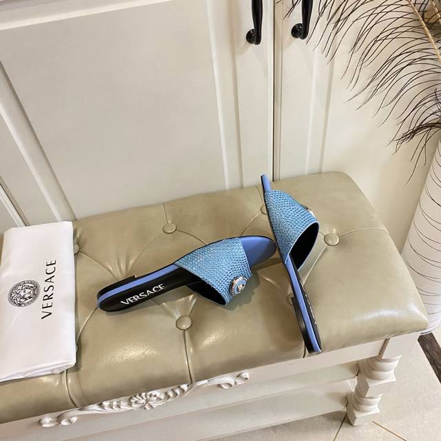 Factory direct price, PP rubber sole, genuine leather sole, custom-made, new Versace model, rhinestone top, lambskin lining, sizes 36-43, sizes 35, 44, 45, custom-made, no returns or exchanges.