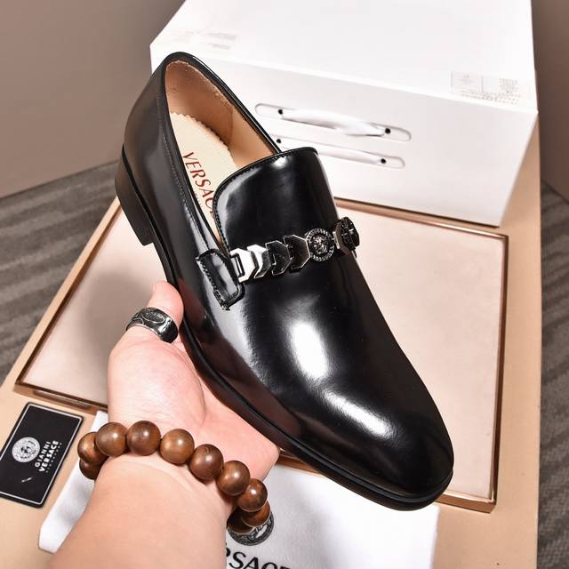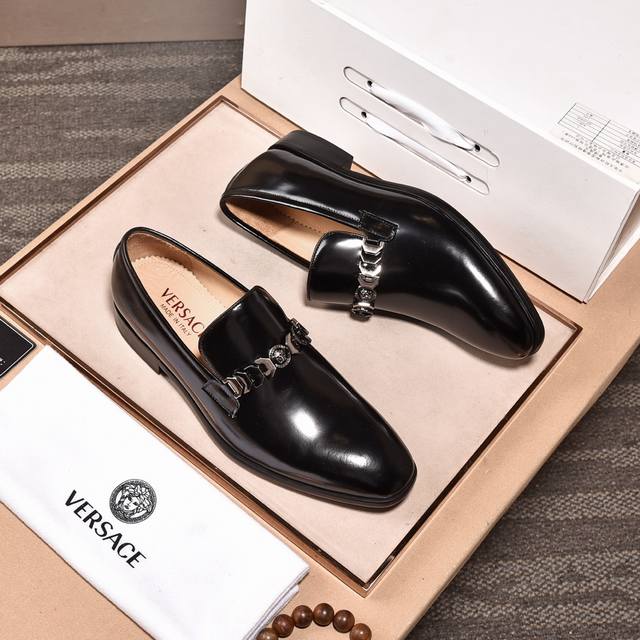 Original Versace dress shoes with Italian imported cowhide, top-grade imported water-dyed cowhide lining, exquisite handcrafting, original sole. Actual product photos, even better looking in person. Standard sizes 38-44.