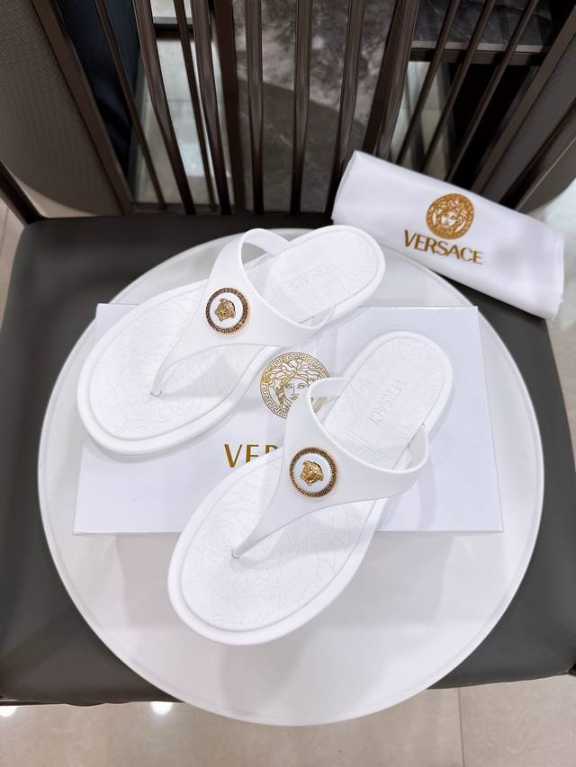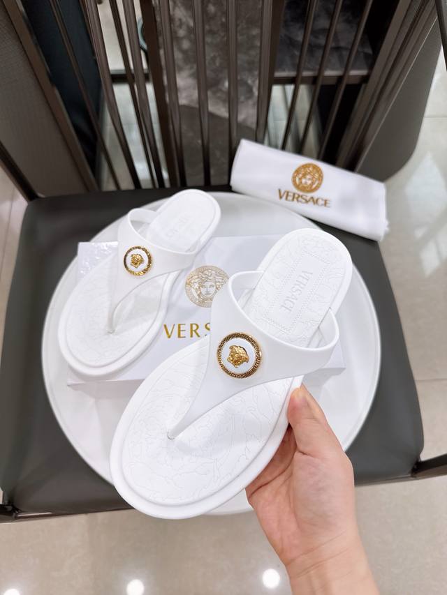 Exclusive Versace classic summer flip-flops, counter colors, all super white