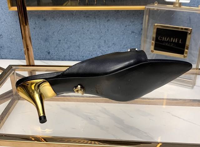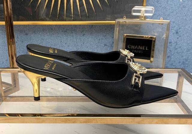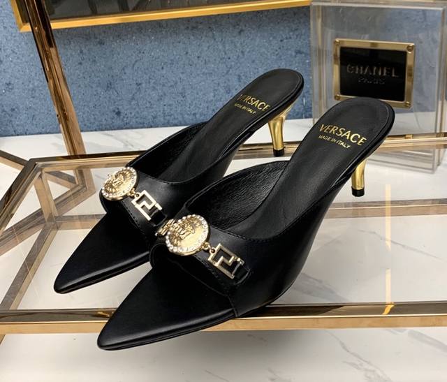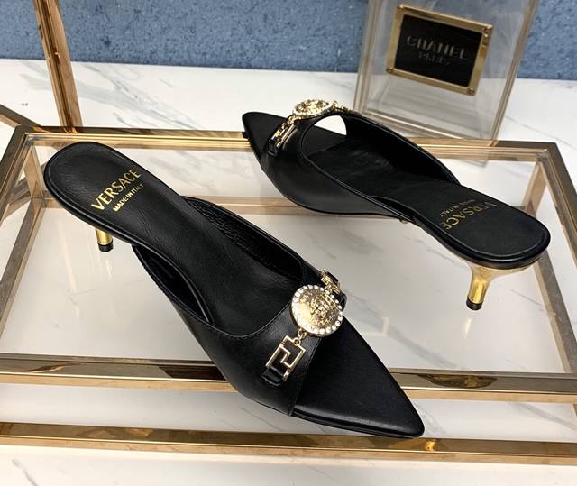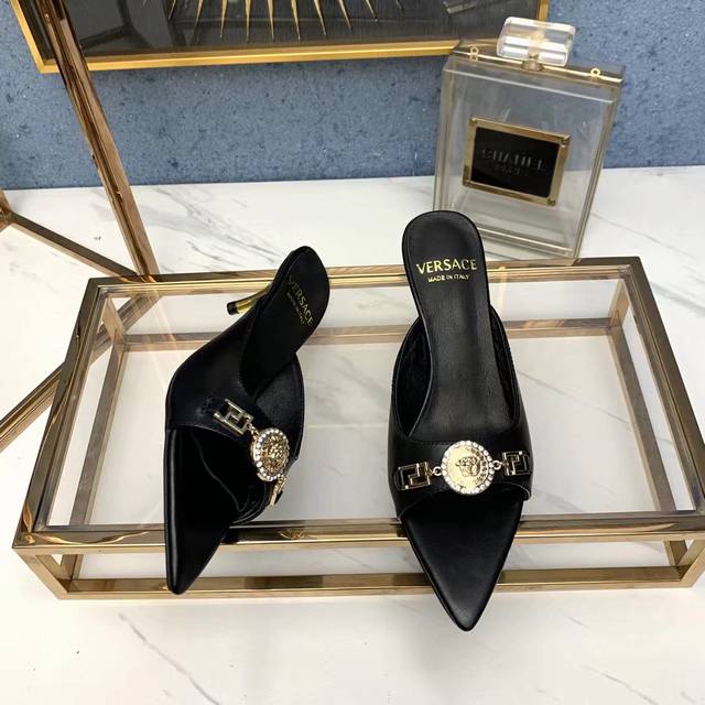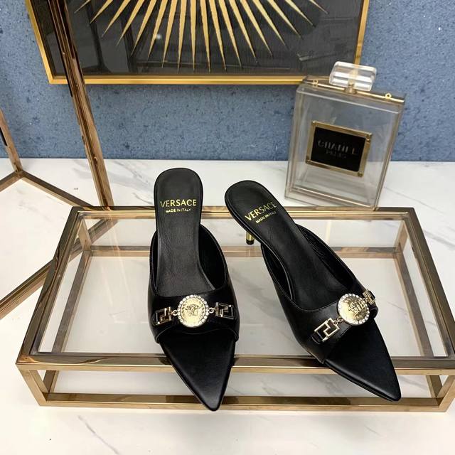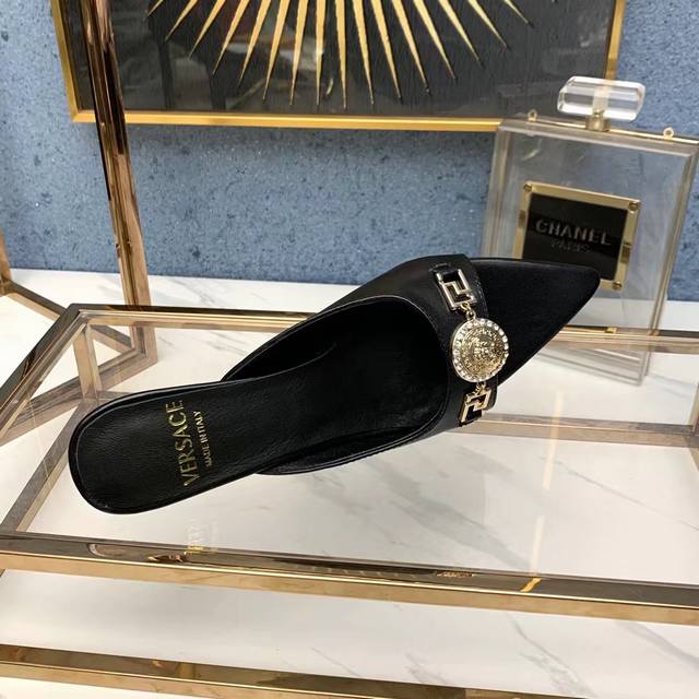 Sizes 35-42, factory direct, Versace new low-heeled sandals, cowhide upper, full sheepskin lining and insole, rubber outsole, 6cm heel height, stylish, comfortable, and easy to slip on and off.
