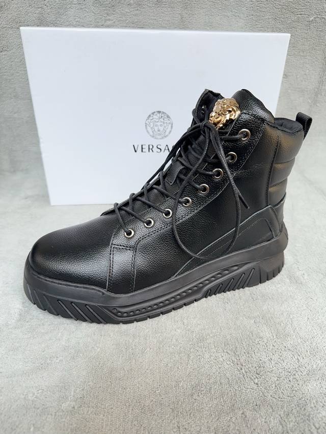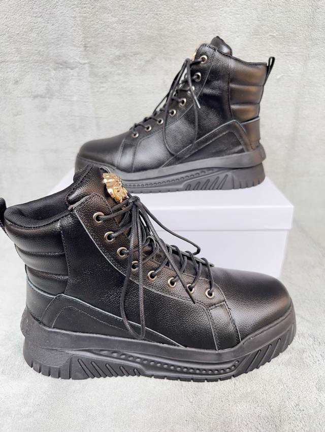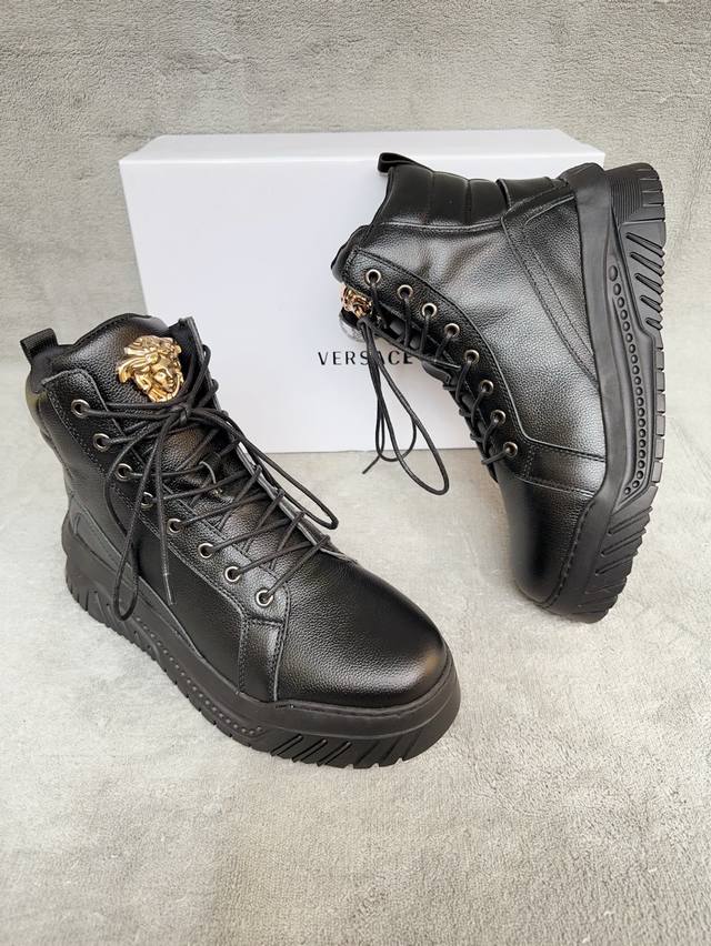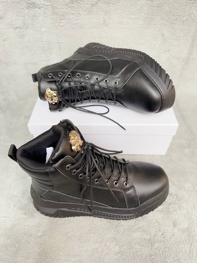 Versace High-Top Classic First Release Fashionable and Versatile Men's Shoes... As an active force in the fashion world, this stylish and simple men's shoe is designed for trendy Chinese men. The upper is made of imported calfskin with a leather lining and a toe strap. Clean, neat, stylish, and generous... Original factory special supply of genuine leather, non-slip, wear-resistant rubber outsole, classic, fashionable, and versatile series! Quality you can see. Sizes 38-44, 45, 46. Custom orders available.