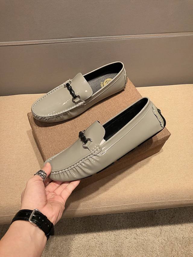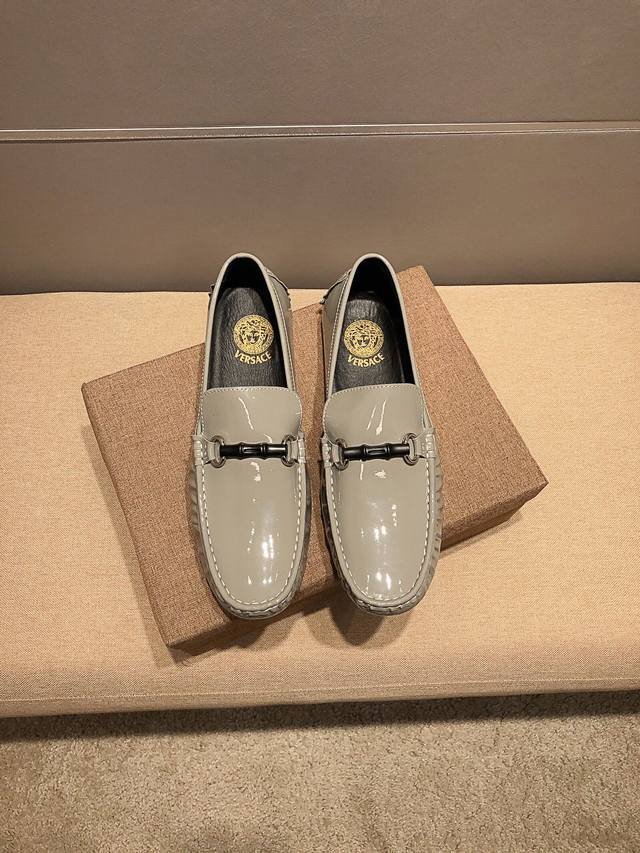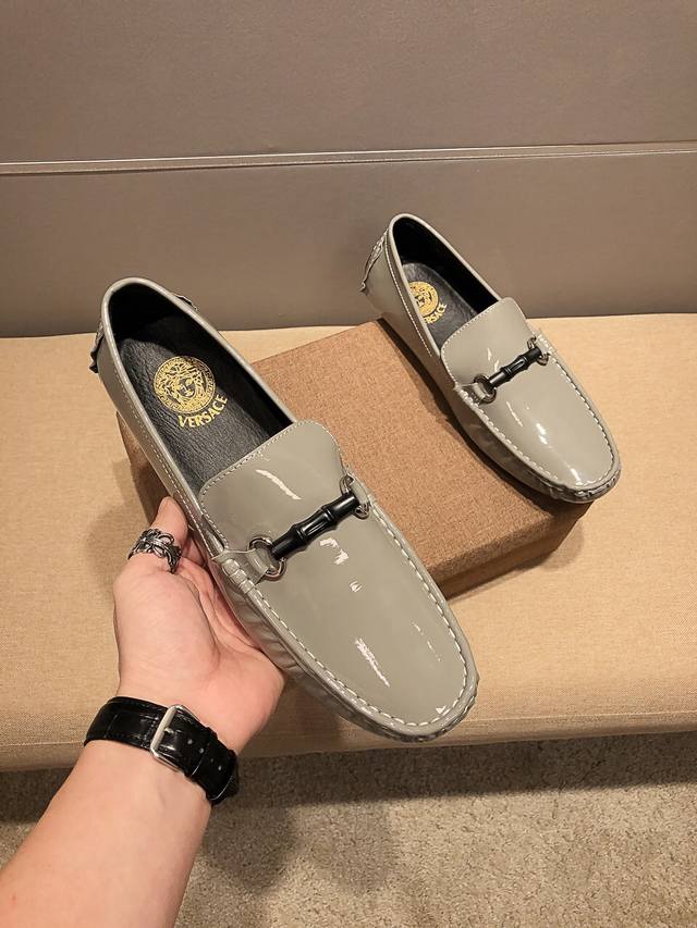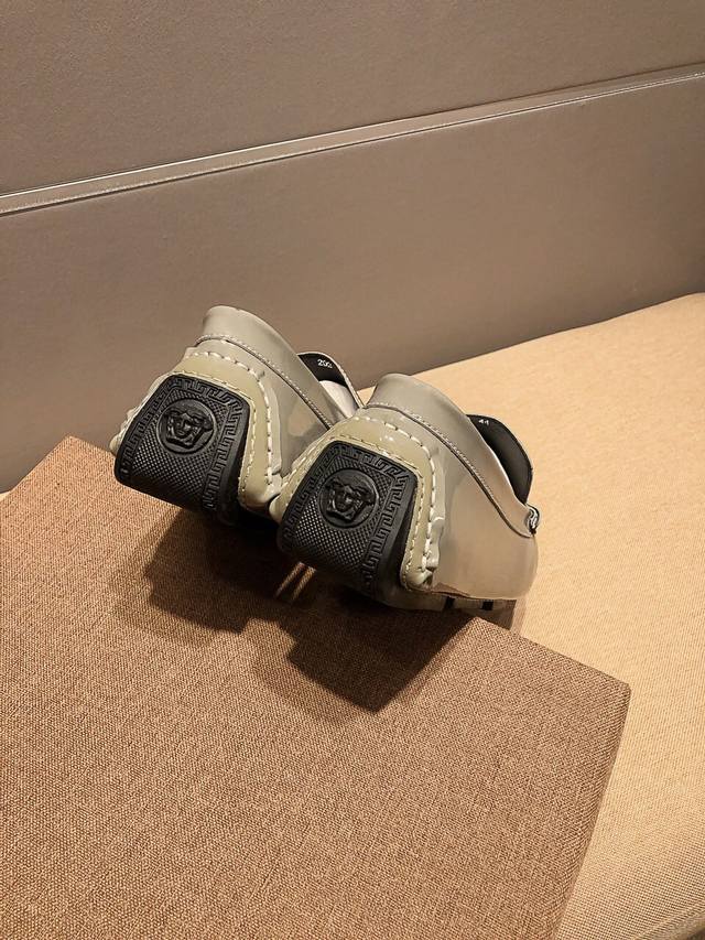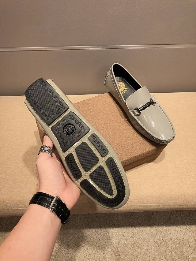 Authentic Versace product from the official Versace flagship store, a model seen at Milan Men's Fashion Week. Made from imported grey cowhide leather, it's super soft, sweat-wicking and breathable. The horse head pattern on the shoe represents premium craftsmanship. Understated and stylish, it looks amazing on the feet