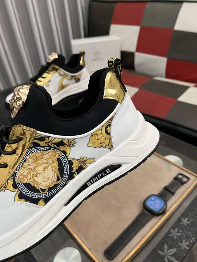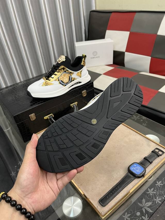 Factory direct price for men's sports shoes, original Versace men's fashion shoes, luxurious quality. The designers professionally create each Versace casual shoe with a unique style in every collection. The upper is made of imported Italian cowhide, and the comfortable mesh lining ensures a comfortable fit. Giving you a high-profile, luxurious comfort experience. Sizes: 38-442 colors available.