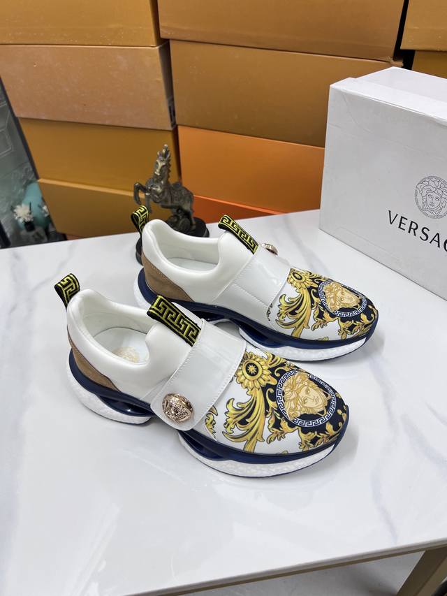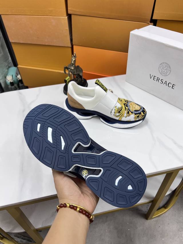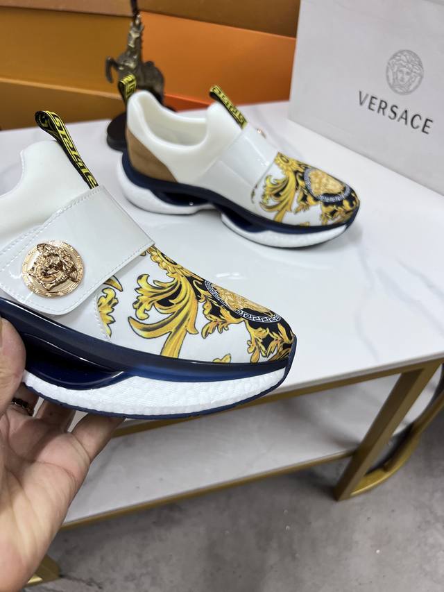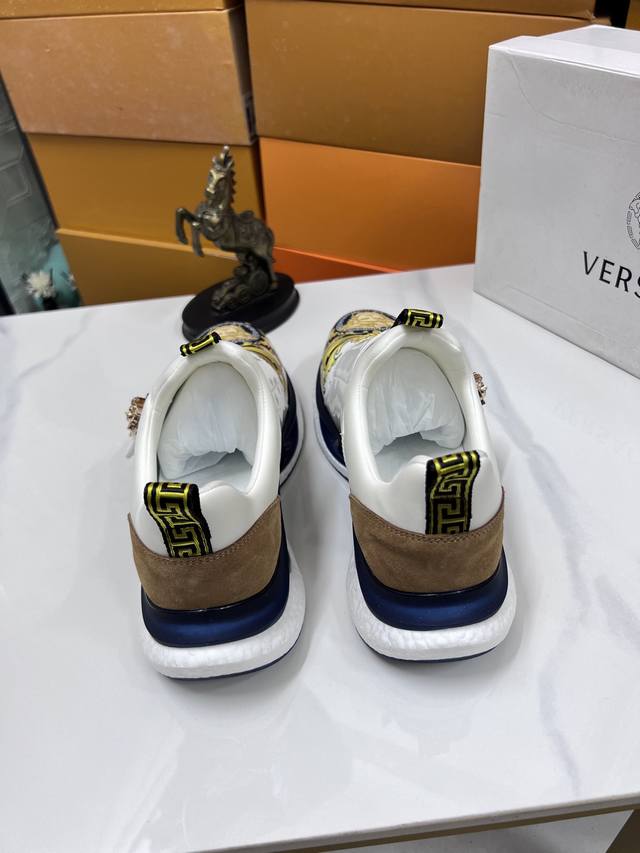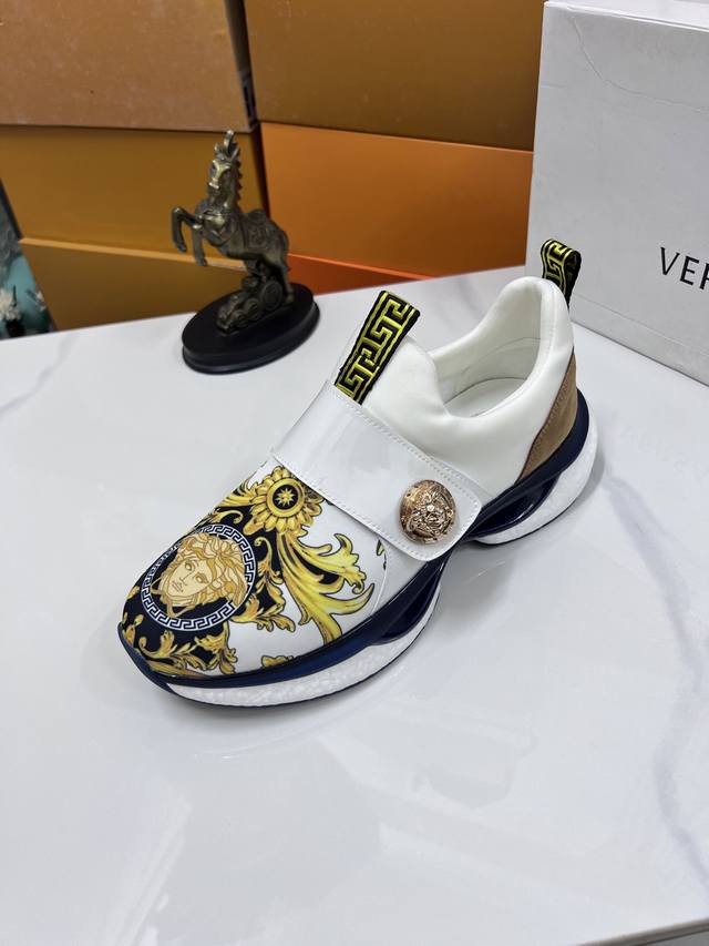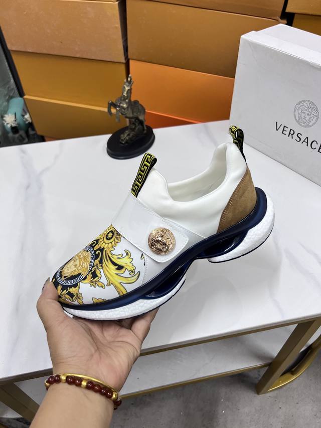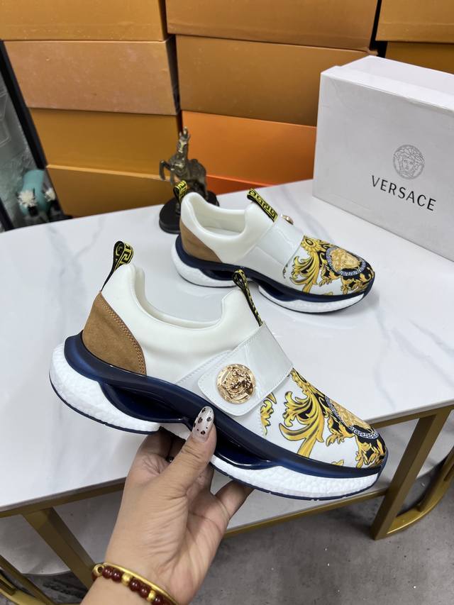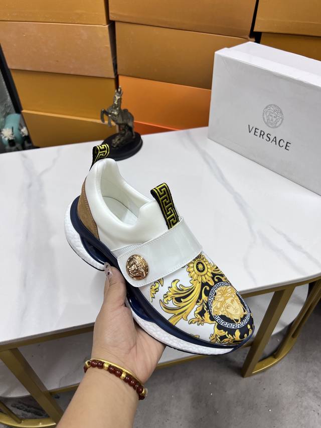 Factory direct price men's sports shoes, original Versace new style casual shoes, original high-quality upper, imported splicing, genuine leather lining, thickened latex insole, stylish and dynamic design, original Fendi comfortable sole, simple and elegant sporty casual style. Sizes 38-44, order 45.46 M
