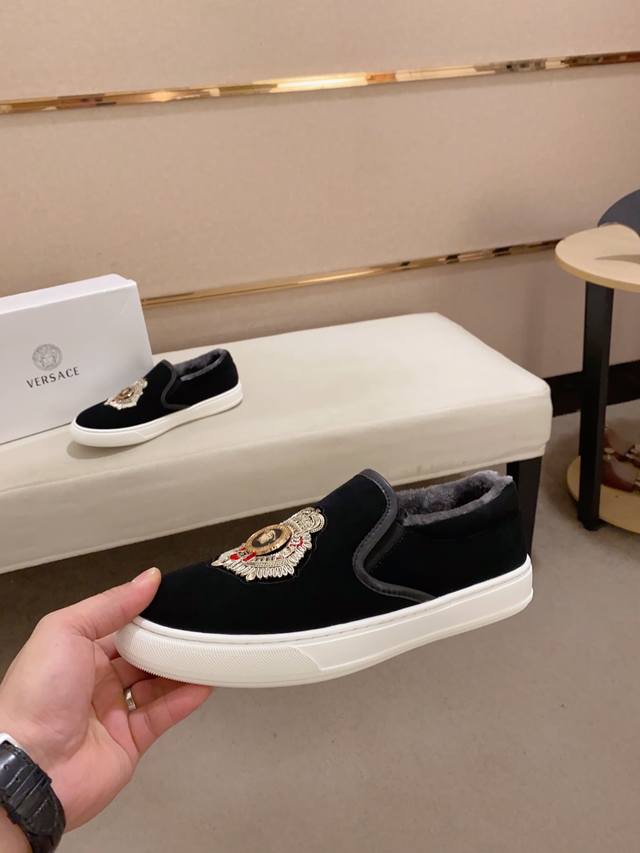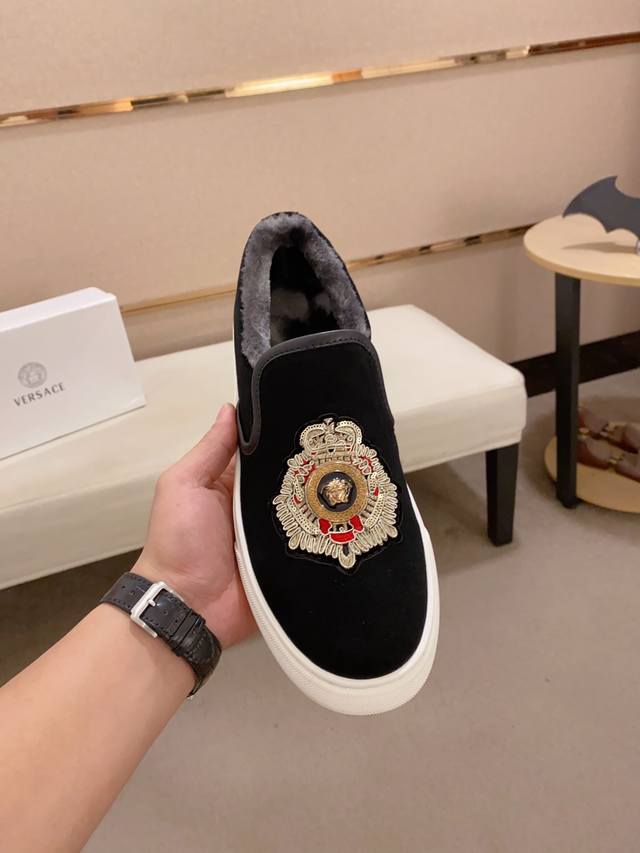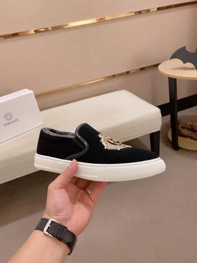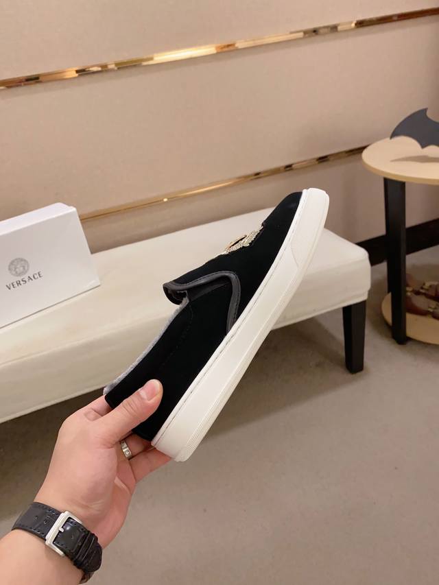 Factory direct price new Versace shoes. Imported cowhide upper. Imported fleece lining. Original outsole mold. A perfect match for every gentleman's status. Stylish and sophisticated on the foot. High-end custom-made replica. The last remains unchanged regardless of weather conditions, standing the test of time. Sizes: 38-44 DDD