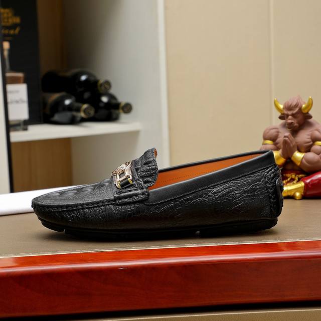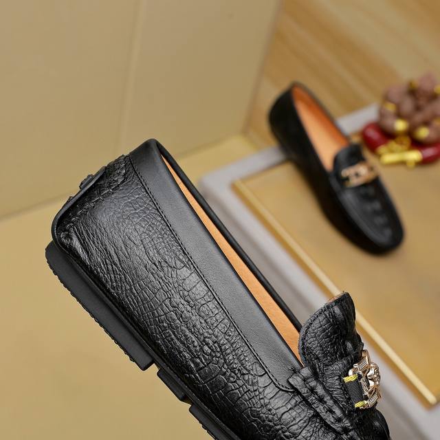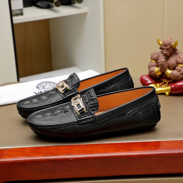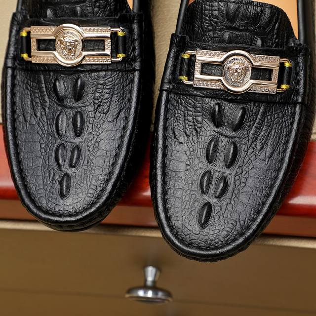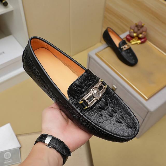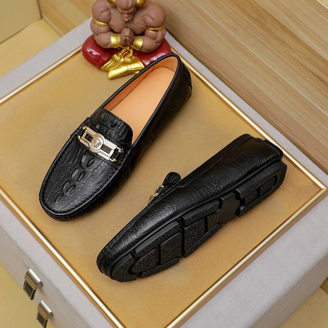 Factory direct price Versace men's new driving shoes are now available. Original quality, 1:1 replica of the official website. Made with top-grain cowhide lining, perfect design, top quality, durable rubber outsole, full and three-dimensional shape, super versatile, high-end and tasteful, fashionable and novel. Colors available! Sizes: 38-45, 46. Custom orders are welcome.