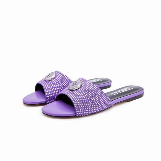 Factory p price women's clothing women's shoes sports original single Versace new flat-soled diamond slippers, size 35-43, 44.45 custom-made non-refundable,