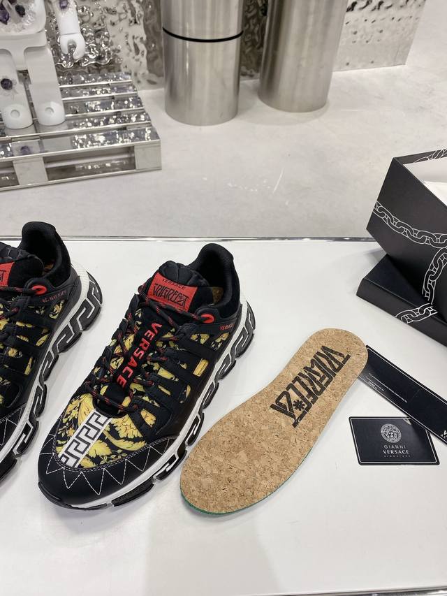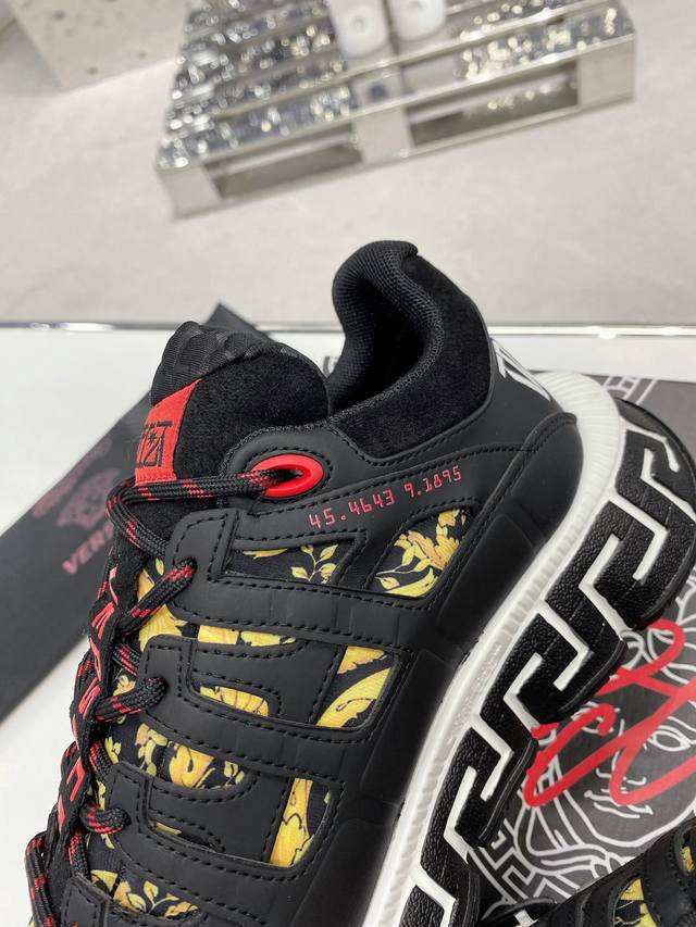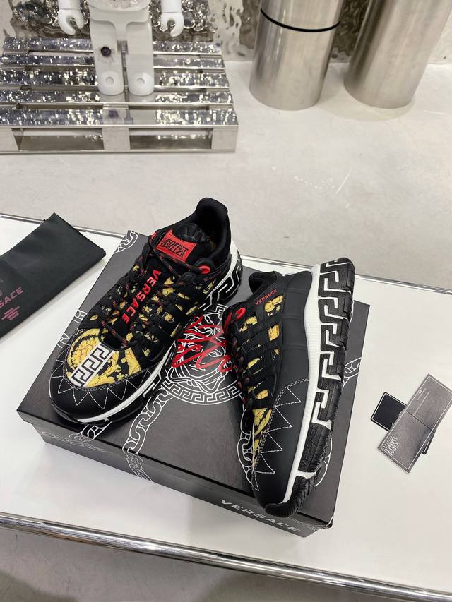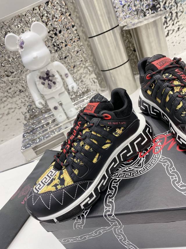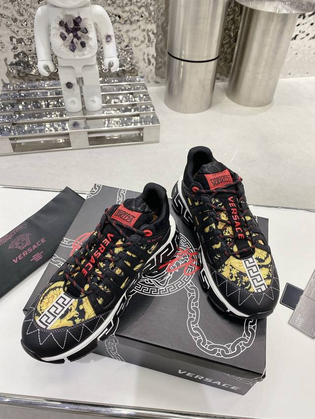 Versace's latest runway casual dad shoes for men and women, original color-blocked hand-painted casual shoes
