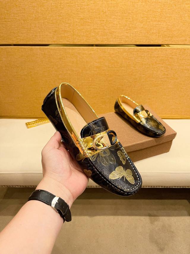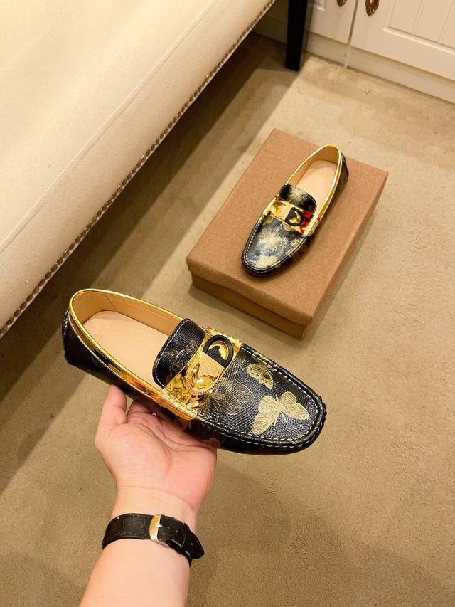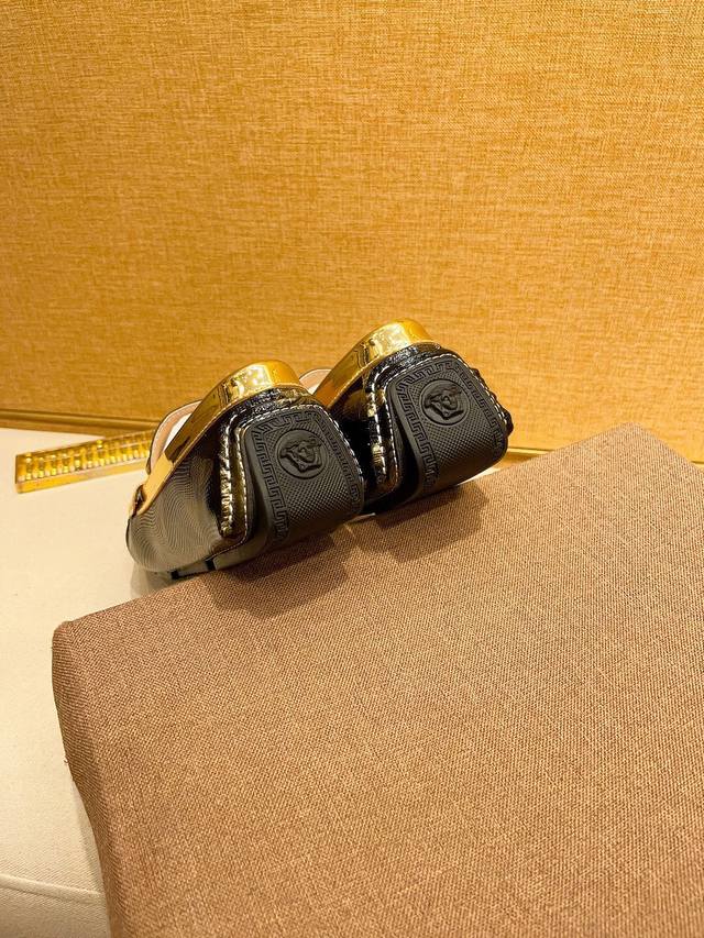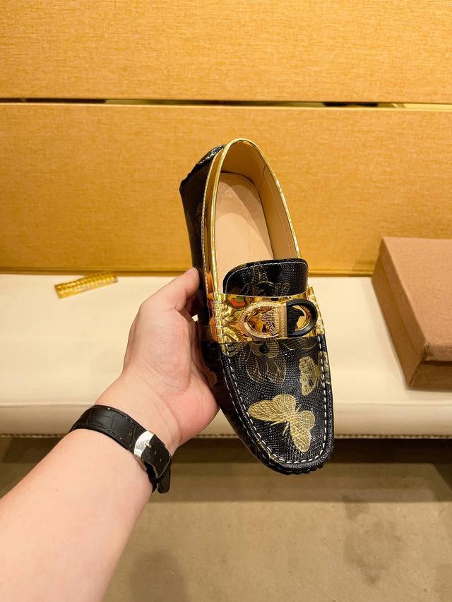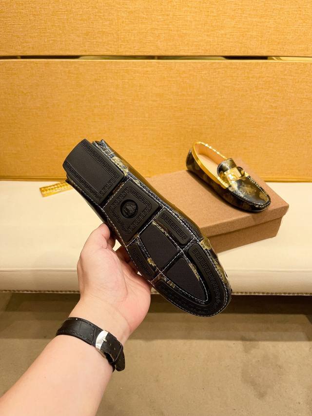 Factory price: New Versace men's loafers, original quality, 1:1 synced top-grain cowhide lining, perfect styling, top-quality, durable rubber outsole, full-body silhouette, full three-dimensional feel, super versatile, high-end yet stylish, fashionable, and innovative. Available colors! Sizes: 38-44, 45, custom made.