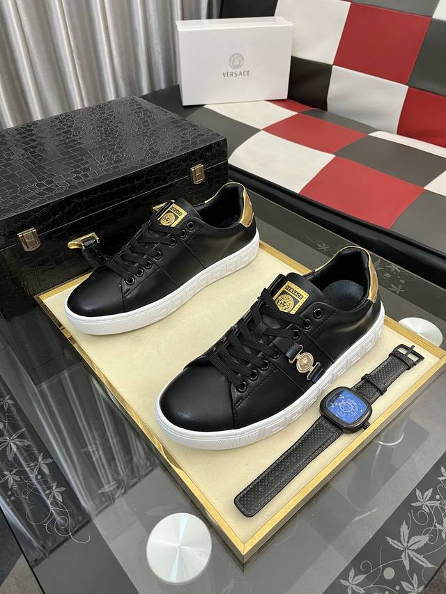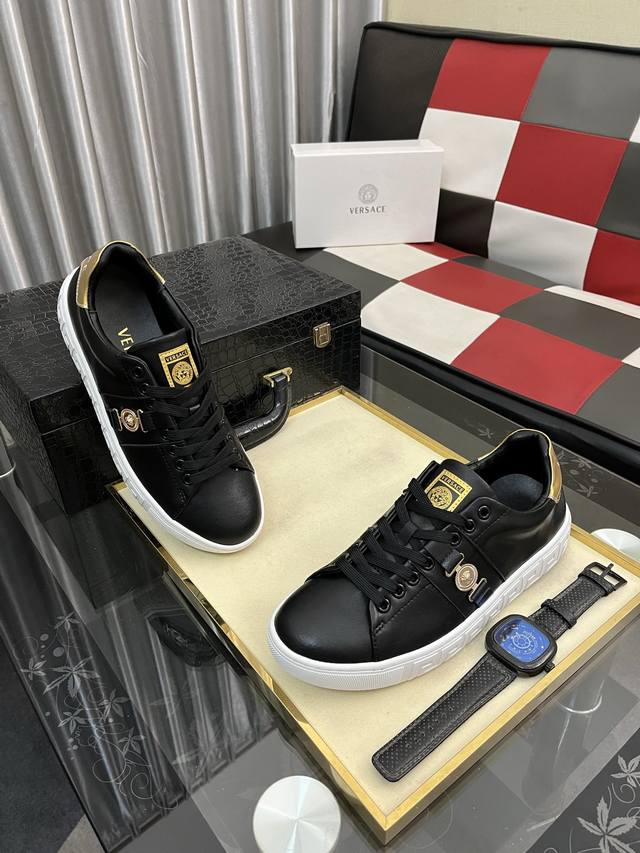 Factory Price (pp): Versace men's high-top newest and hottest casual shoes. Top-tier luxury brand upper made with imported brand printed fabric and cowhide, breathable lining, and pigskin insole with exquisite workmanship. Stylish and durable outsole, lightweight and comfortable on the foot. Even better looking in person. Available in colors 38-444.