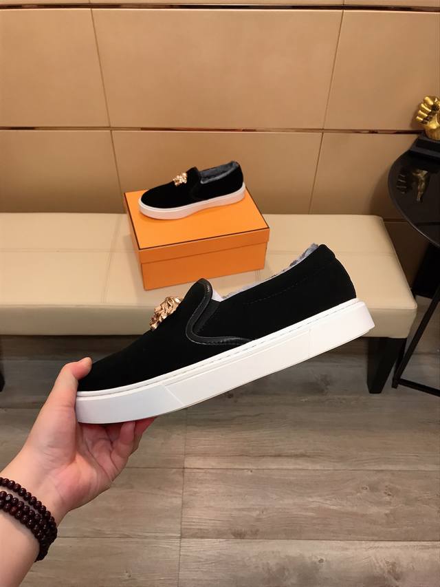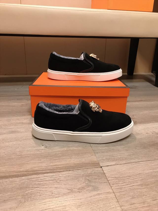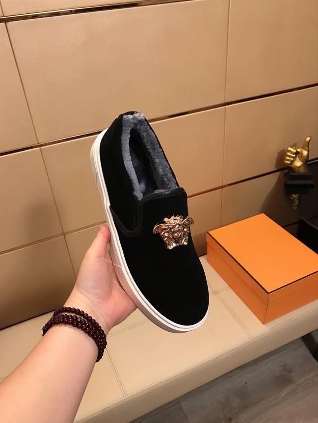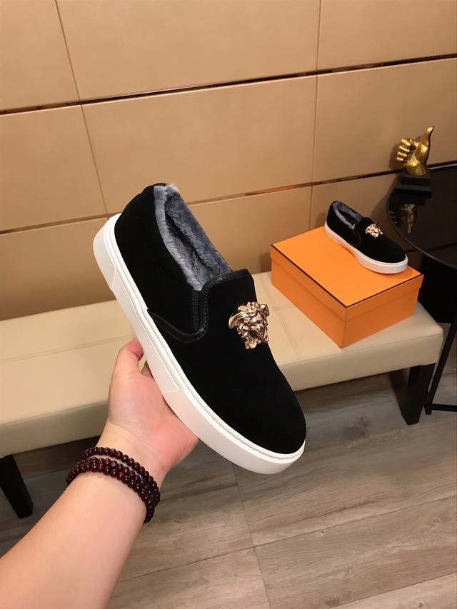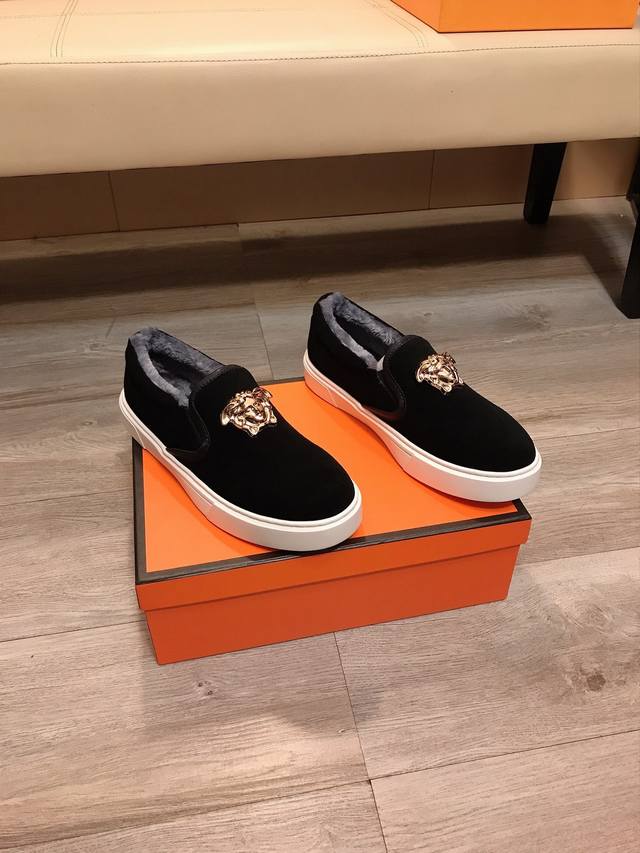 Factory Price (pp) Versace's latest casual and fashionable shoes, a hot-selling style with a simple and elegant design. Featuring exclusive new brand elements, the upper is made of high-quality imported suede leather with a warm fleece lining! Stylish and generous, with a durable rubber outsole! Actual product photos. Sizes: 38-44 DDD