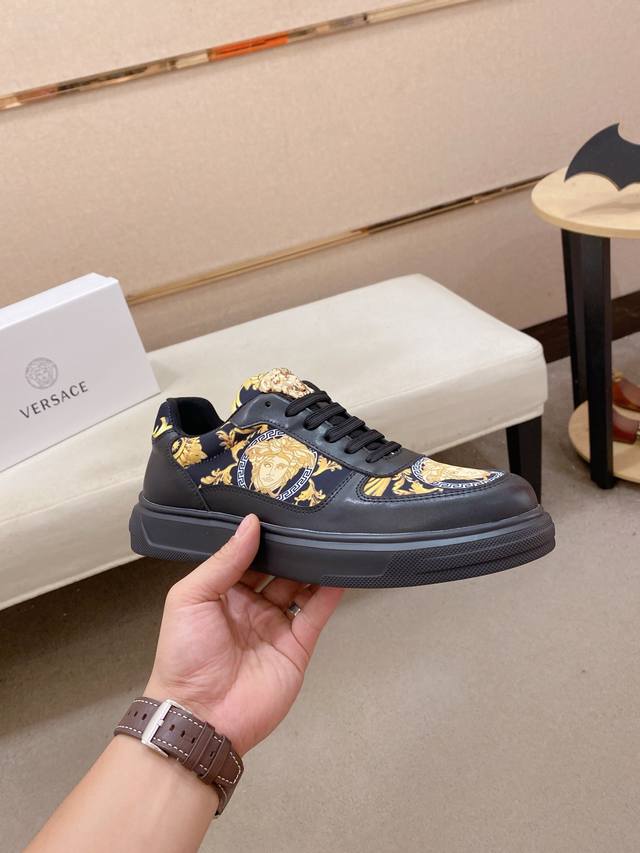 Factory-priced men's sports shoes, original and new Versace. Imported top-grain cowhide upper and imported sheepskin lining. Original outsole, perfectly complementing every man's style. High-end custom-made, durable, weather-resistant shoe last. Sizes: 38-44