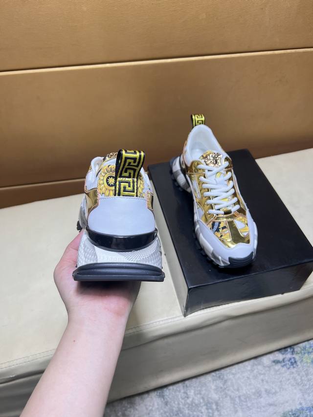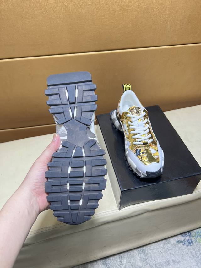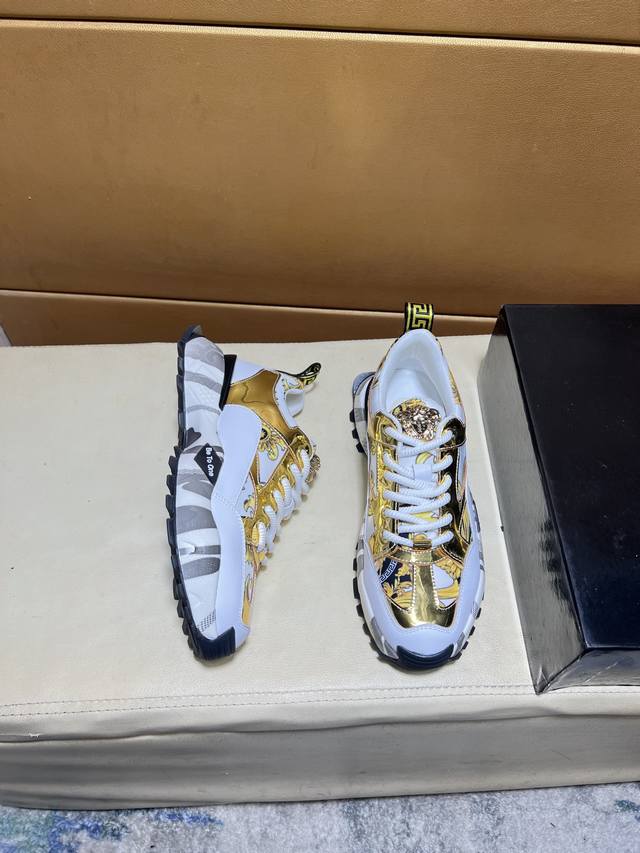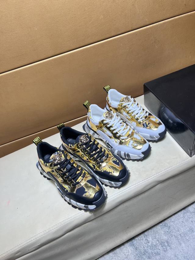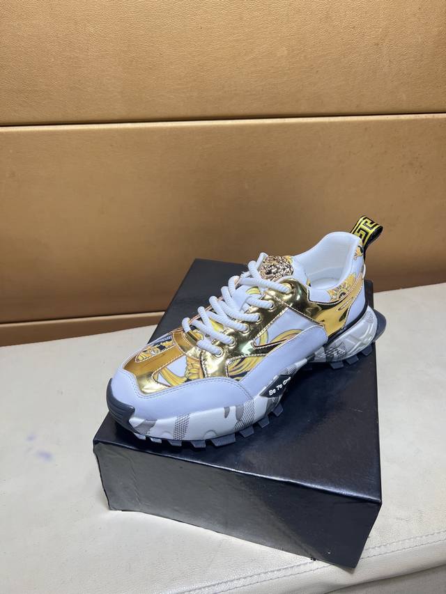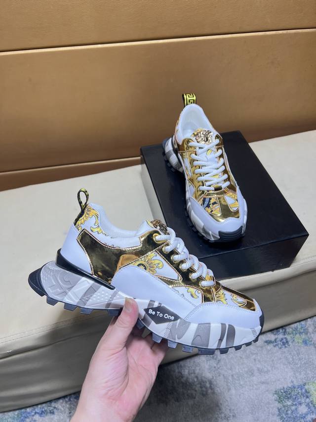 Factory-priced men's sports shoes. Original Versace quality. Unique, modern sneakers. A must-have for trendy men. Imported from Italy, this stylish casual shoe features imported leather and a sheepskin lining that resists fading and rubbing. The sole is made exclusively from the original manufacturer, featuring a French, relaxed-style design that fits snugly and is incredibly comfortable. The photos are just like the real thing, and the real thing is even better. High-quality sneakers are available in sizes 38-44, 45, and 46, and can be customized to