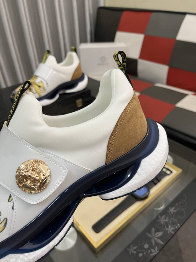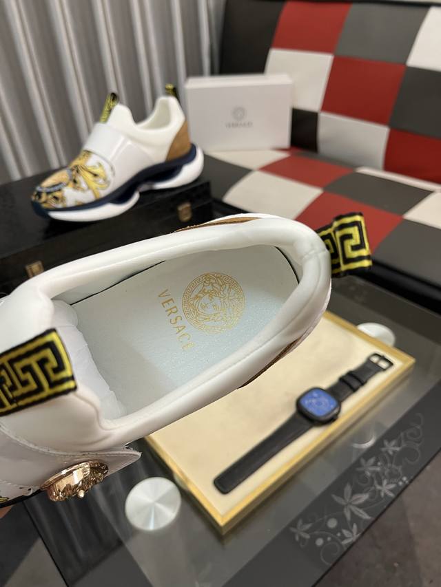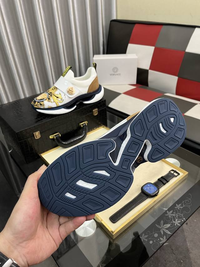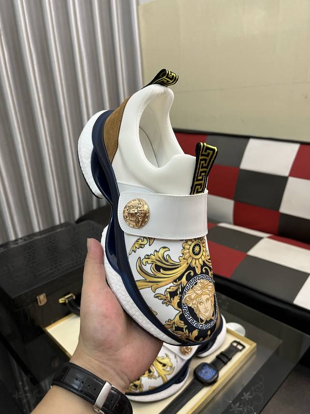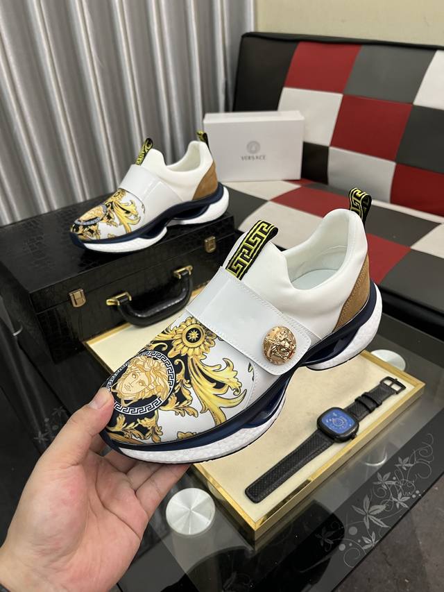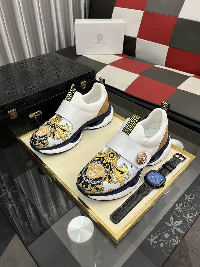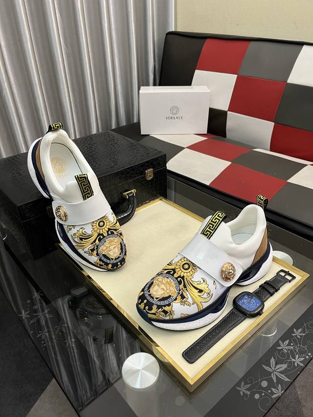 Factory-priced men's sports shoes. Versace's latest meticulously crafted styles are sure to rock the show! This innovative international brand features a cowhide upper, sheepskin lining, and a rubber outsole for breathable comfort. Quality speaks for itself. Sizes: 38-442, available in